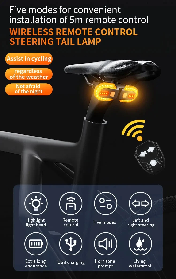 4. 【5 Working Modes】: yellow light strong light – red light strong light – full light flashing – left turn signal – right turn signal