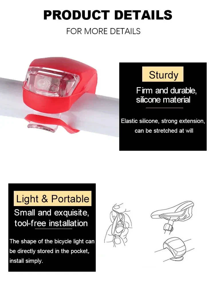 • Waterproof :The silicone LED bike lights are waterproof, making them perfect for cycling in any weather condition.