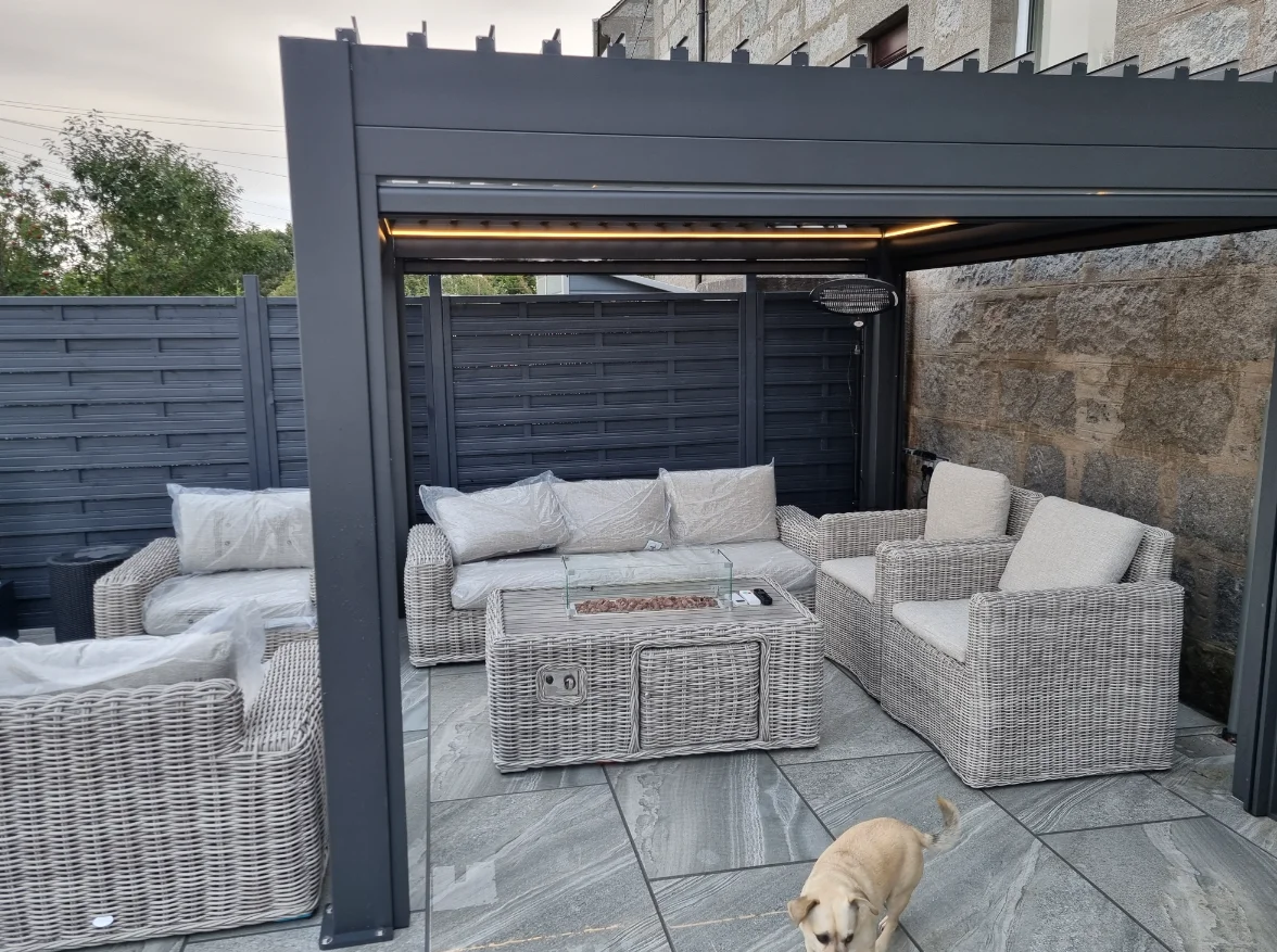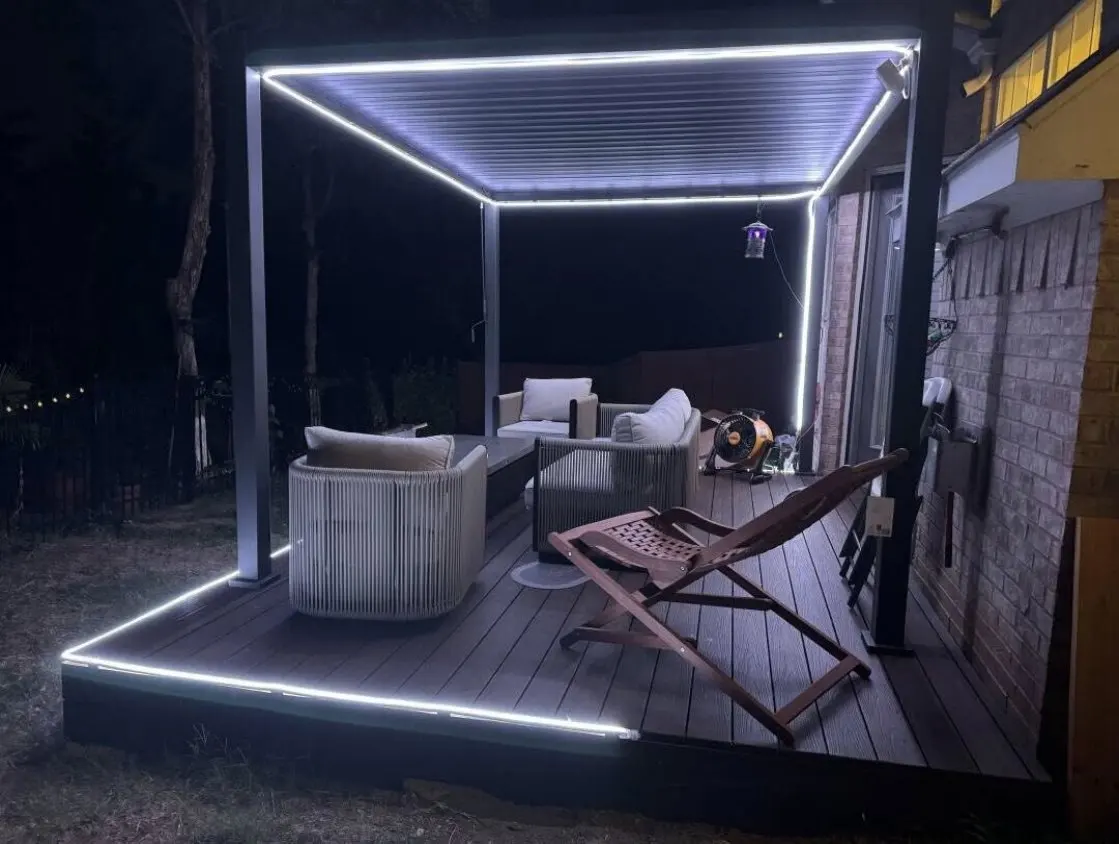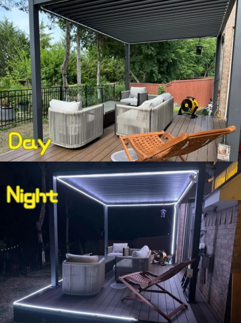 I love the adjustable louver roof – it allows just the right amount of sunlight during the day.