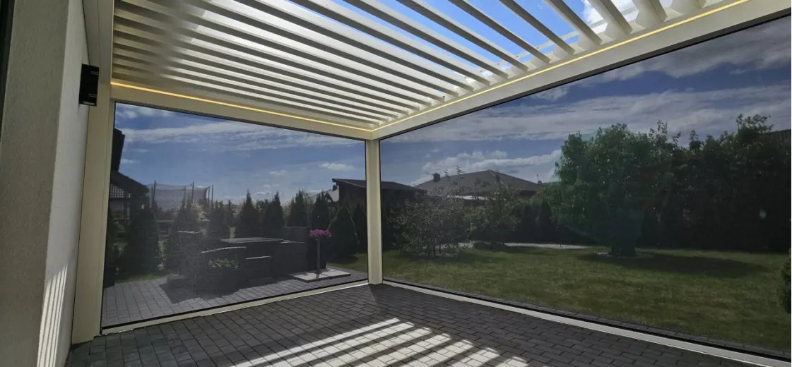 Prepared for my jacuzzi, very convenient! Not only does it protect against the sun, but it also provides more privacy when the roller blind is pulled down