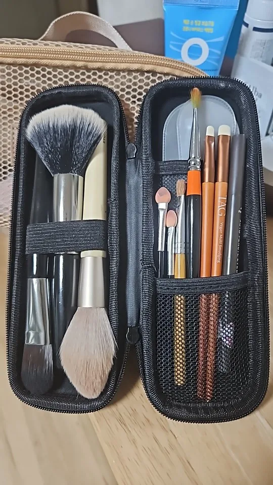 ▲Makeup brush storage bag with large zipper opening for easy access.