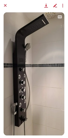 Beautiful and shiny shower column in perfect condition. It works perfectly. It’s a bit narrow but very useful and beautiful.