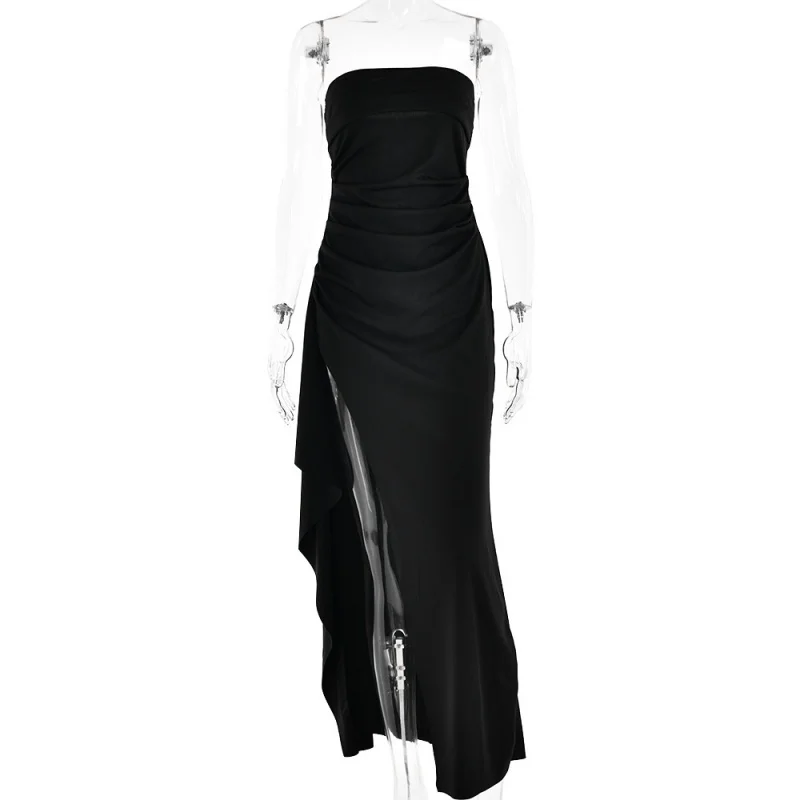 Black Off-shoulder Strapless Backless High Split Maxi Dress For Women Sleeveless Bodycon Club Party Evening Long Dress Clothes