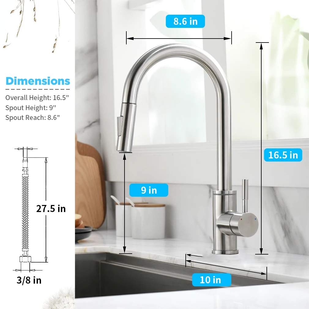 5 reviews for Brushed Nickel Kitchen Faucet Single Hole LED Style Pull Out Spout Kitchen Sink Stream Sprayer Head Black Mixer Tap LED 866006