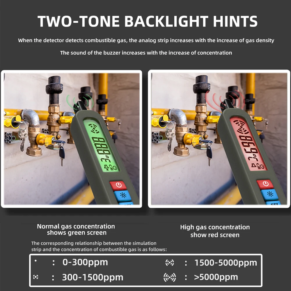 This product is a flammable gas leak detector, used for fast and reliable detection of flammable gas leakage on the gas pipeline, at the same time, the use of high-precision temperature sensors, used to measure the current environment relative temperature instruments; It is widely used and is an indispensable tool for every professional.