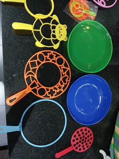 Much better than I imagined! It comes with a large quantity of accessories of all sizes and shapes, and what I liked most is that it comes with two large plates and you can store everything together stacked. I will buy bubble liquid to test it properly, but it looks very good.