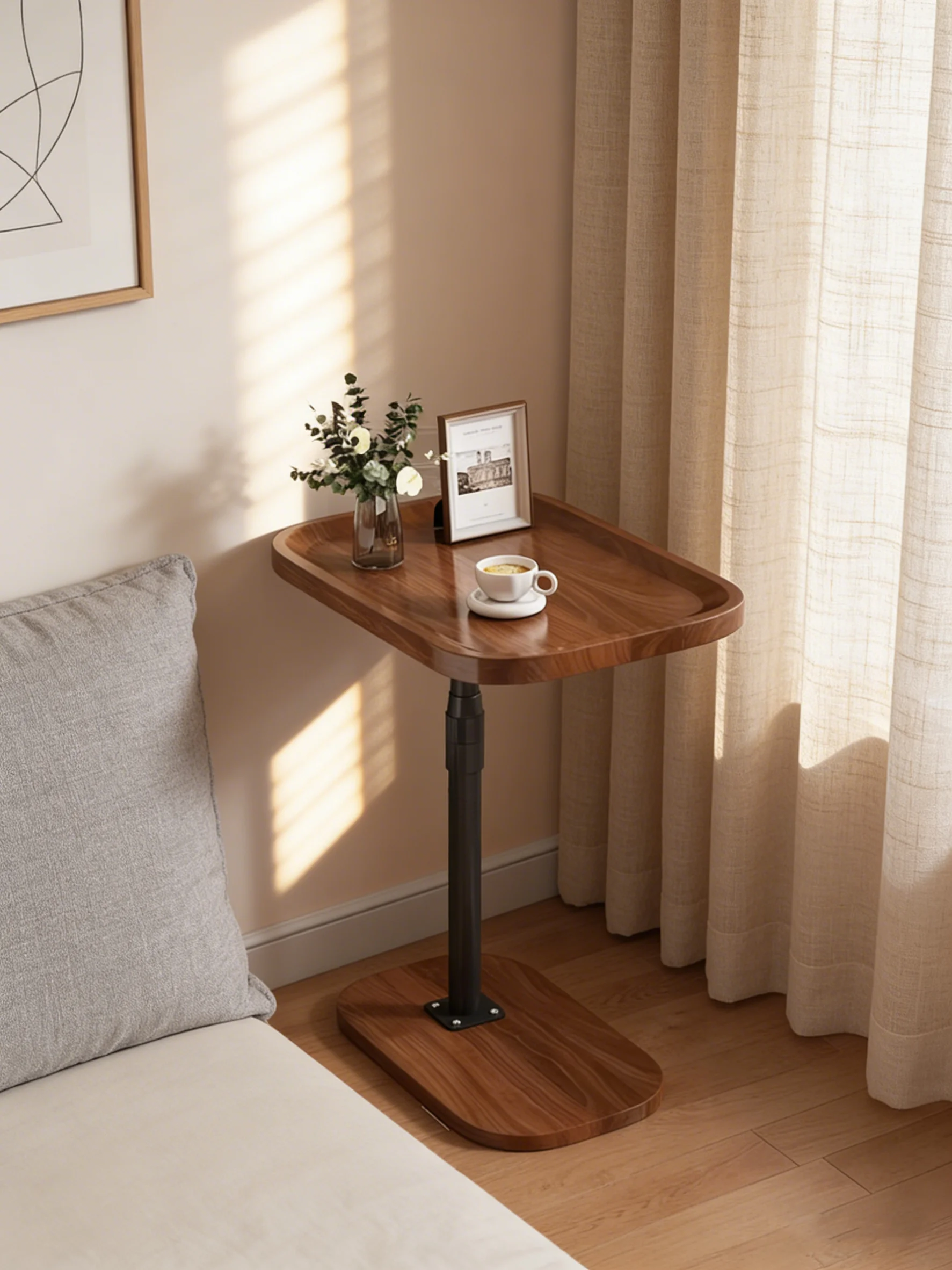 C-shaped coffee table, vertical storage shelf, sofa bed sliding sofa side table, small space small table, tight bedside table