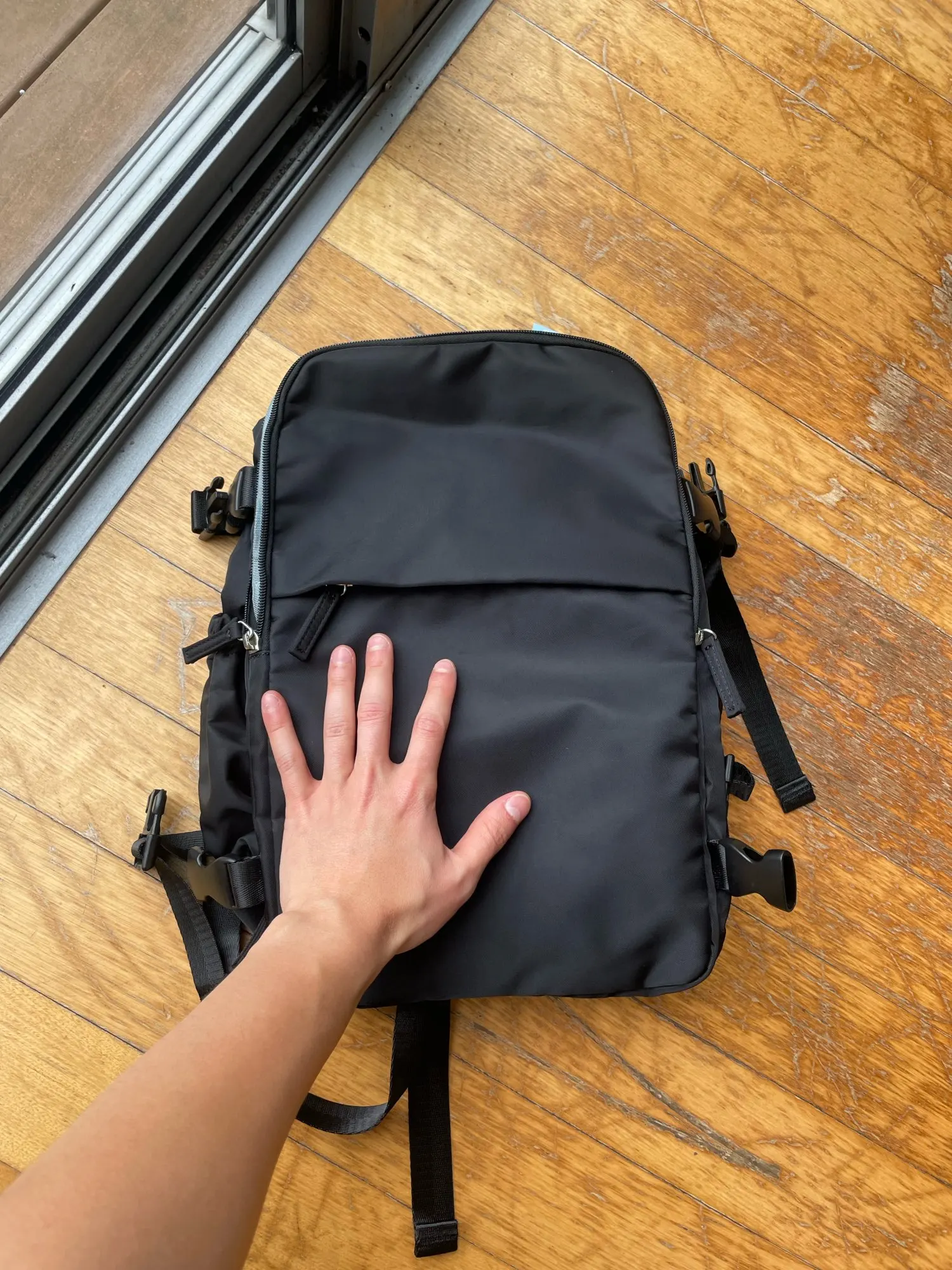 It’s pretty small, but i guess that fits most airline size requirement. Despite that, it’s actually very spacious because of the design. It’s the perfect backpack for short trips where you don’t need check in, and love that the water bottle is on the outside not the inside – this is actually quite rare.