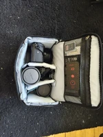 I’m thrilled, perfect size, ideal for a mirrorless camera, in the photo a Sony a6300, Sony 35mm 1.8 OSS lens, 7artsians 7.5mm, and Prakticar 130mm with a bayonet mount adapter E, in the top compartment there are also 4 batteries, remote control, USB-C to SD adapter, and an SD card, as you can see, there’s still room for something else.