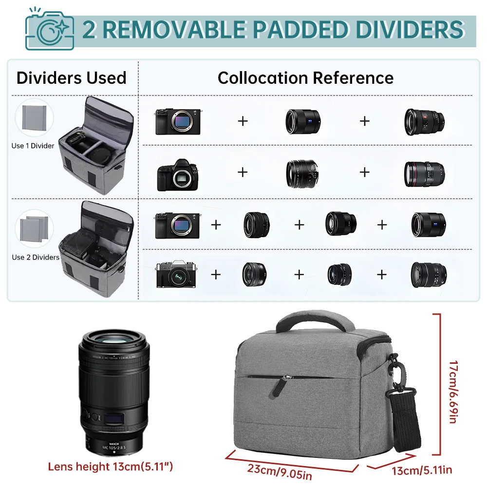 With its extensive compatibility, this camera case is designed for Digital Camera/ DSLR/ SLR/ Mirrorless cameras of different brands such as Nikon, Sony, Fuji, Canon, Olympus, Pentax, etc. Perfect camera bags for photographers and men/women camera enthusiasts.