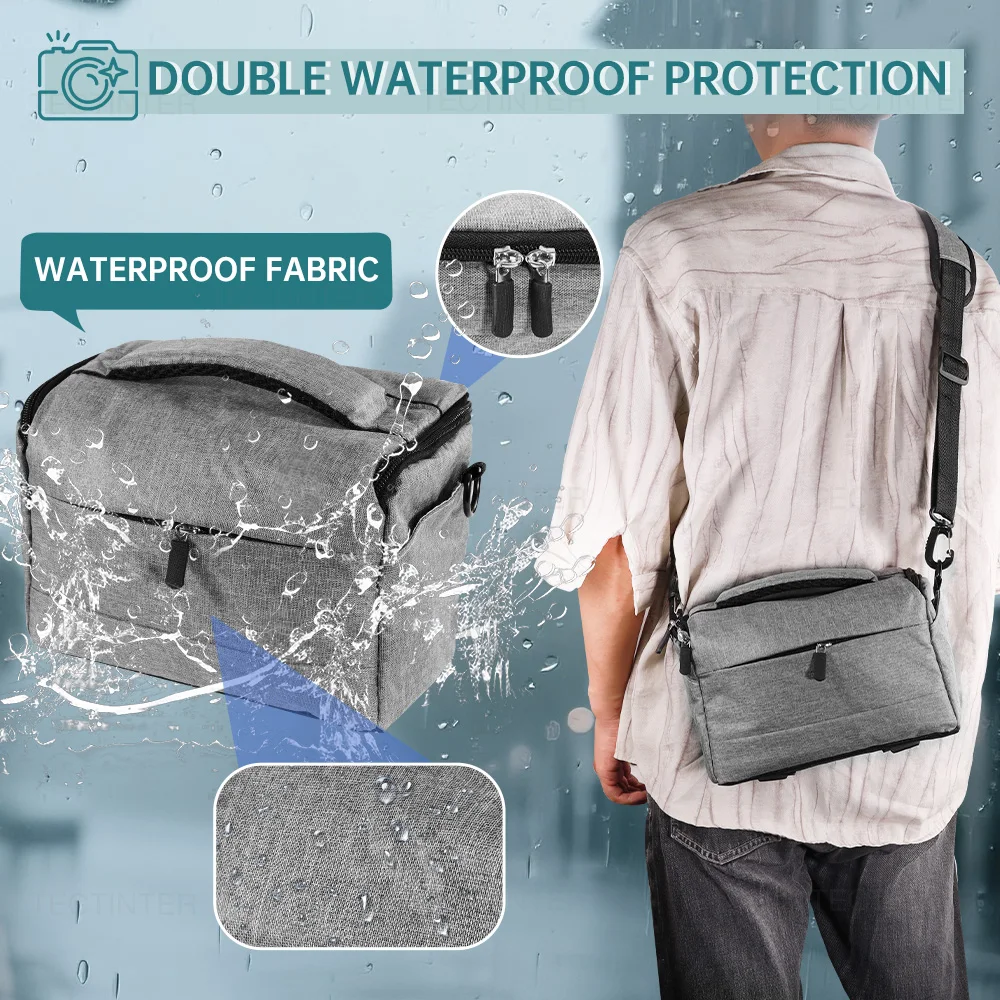 Built with a dual waterproof design, this camera bag offers reliable protection against rain, splashes, and moisture, keeping your camera and accessories safe outdoors.