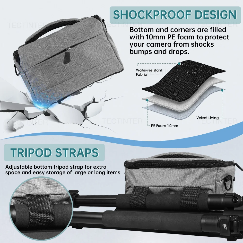 The sturdy, shockproof structure minimizes impact from drops and bumps. Designed with a dedicated slot to securely carry a tripod, making it ideal for photography on the go.