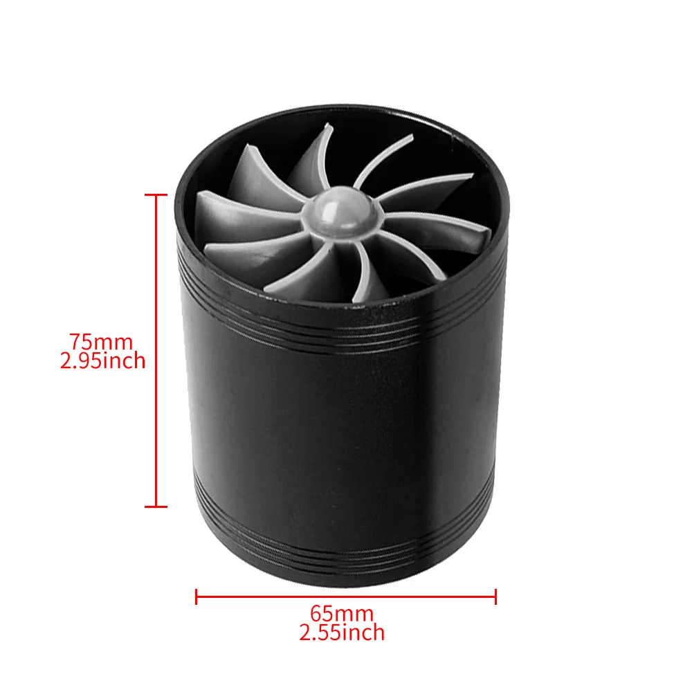 Car Air Intake Turbine Refit Turbo Gas Fuel Oil Saver Dual Fan Turbo Supercharger Turbine Fit for Air Intake Hose Dia 65-74mm
