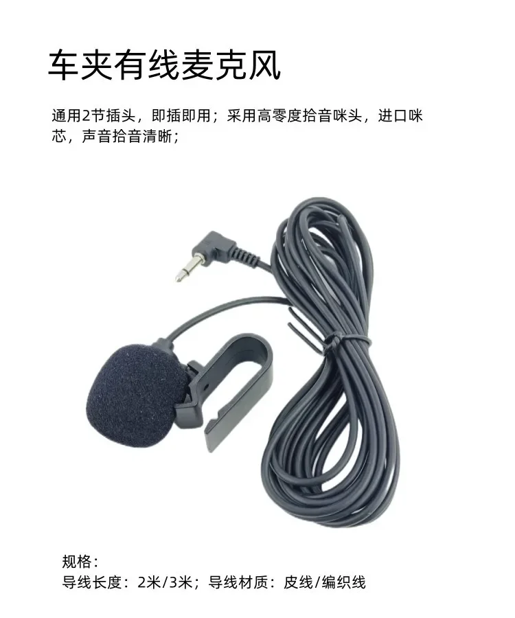 Car Audio Microphone 3.5mm Clip Jack Plug Mic Stereo Mini Wired External Microphone For Auto DVD Radio 2/3m Long Professionals