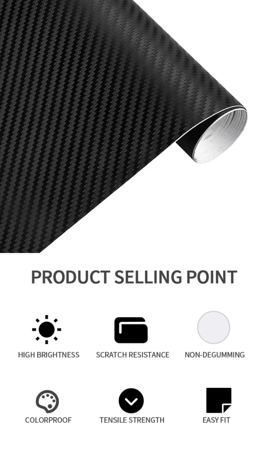 • 5D Carbon Fiber Sticker :The 5D carbon fiber sticker adds a unique and stylish touch to your car’s body, making it stand out from the rest.