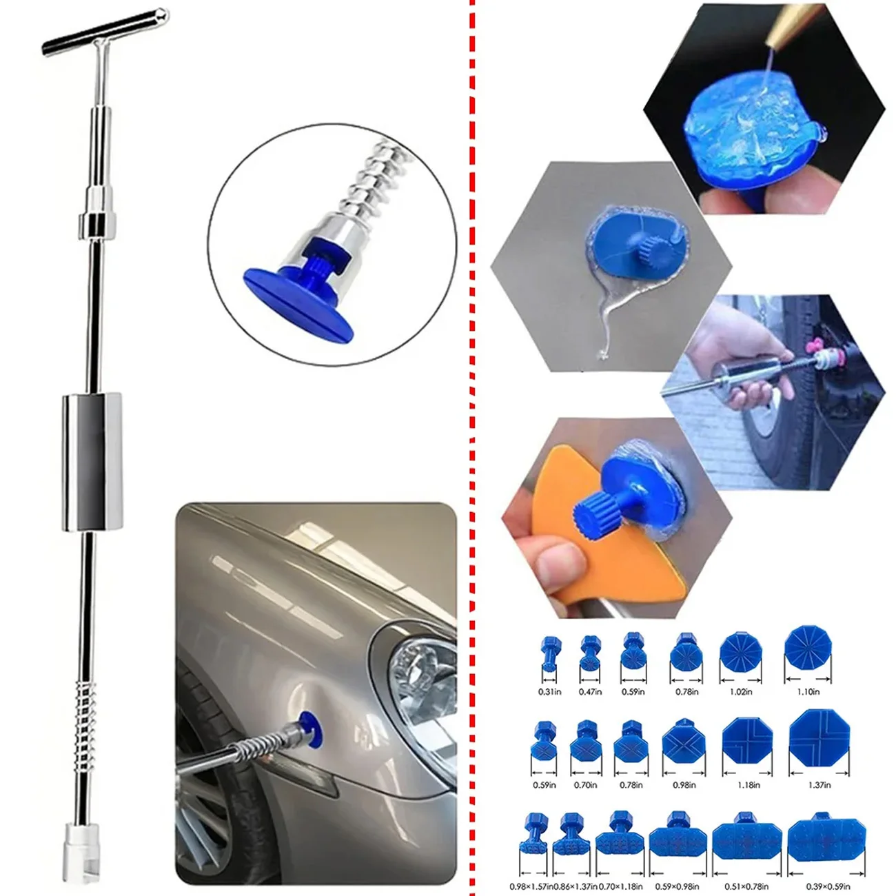 WIDE APPLICATIONS: Our dent removal set is suitable to repair door dings, hail damage and other dents. And effective on auto, motorcycle, refrigerator, washing machine etc.