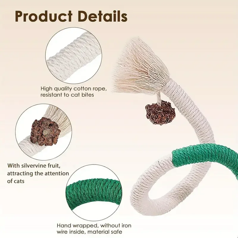 My cat likes this! I don’t k ow what the hard brown thing attached to it was, so I cut it off and threw it away. The rope feels strong and I will get a lot of use from it.