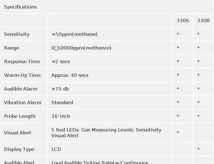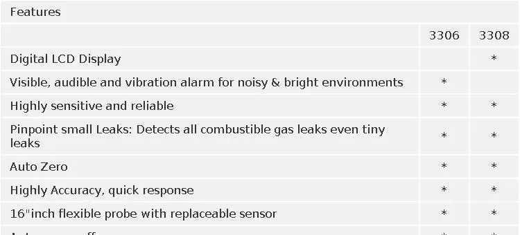 | Pinpoint small Leaks: Detects all combustible gas leaks even tiny leaks | YES |