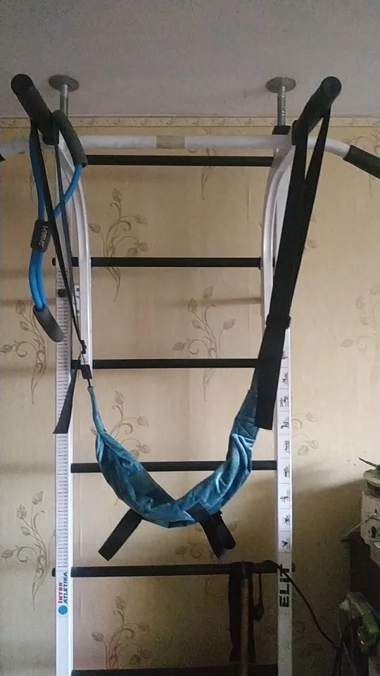 1. Use the horizontal bar or door frame as the tool for hanging traction straps. Hang and fix the steel hook onto the horizontal bar. You can also hang the woven belt directly on the horizontal bar without using steel hooks.