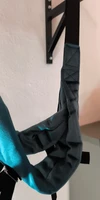 2. Fold the woven belt in half and thread it through the buckle of the pull ring. Adjust the height of the traction belt as needed. If the traction belt is displaced, the tail of the woven belt can be threaded through the buckle of the pull ring again