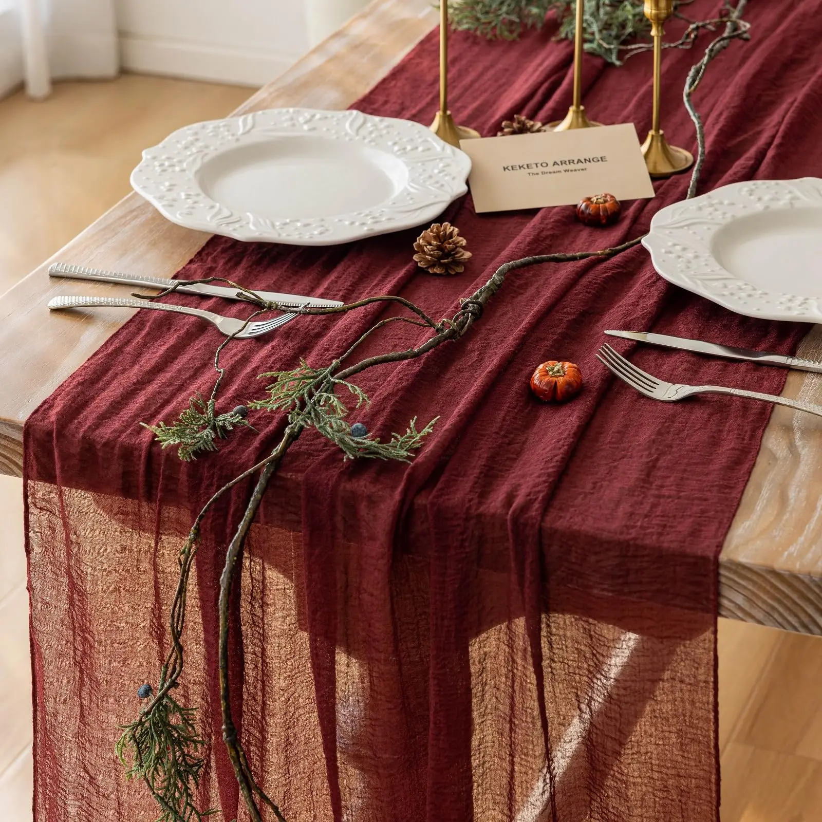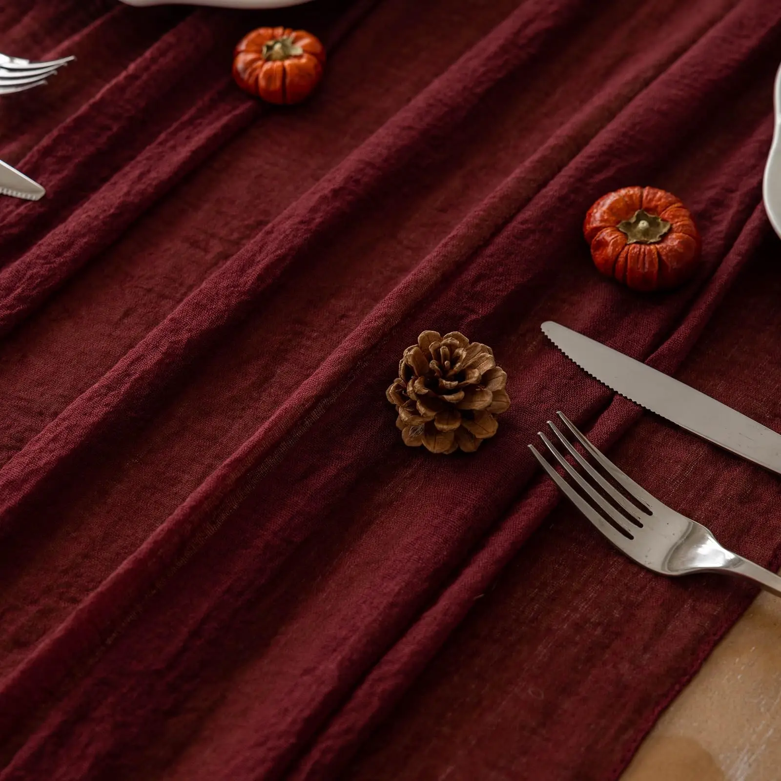 【Superior Quality】Crafted from 100% cotton cheesecloth fabric with manual dying process. The edges are thoughtfully stitched to prevent fraying. This top-notch material is incredibly soft, breathable, and long-lasting, bringing a delightful vintage, rustic, and aesthetic charm to your table.