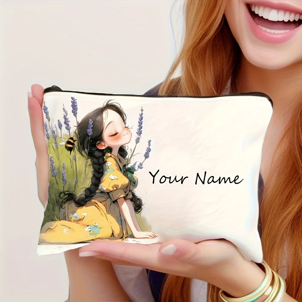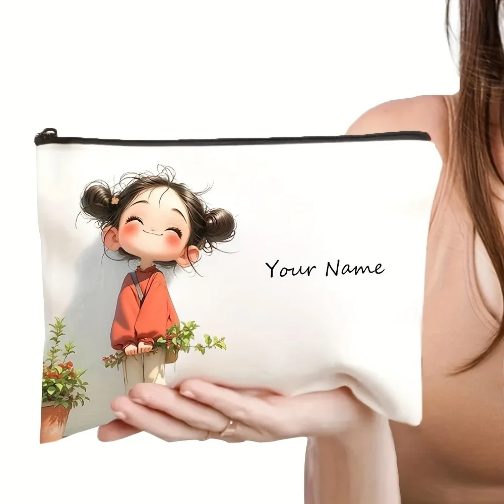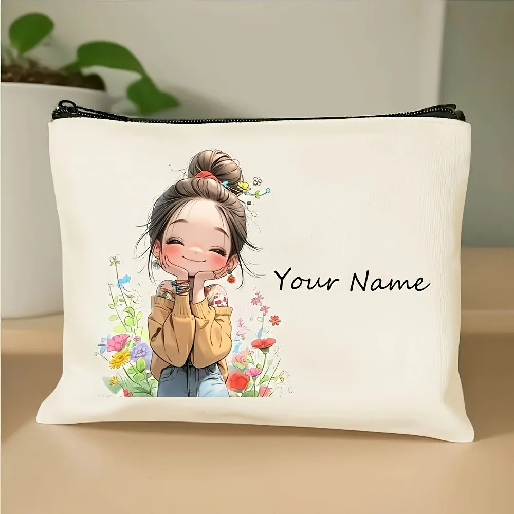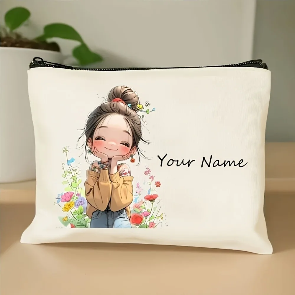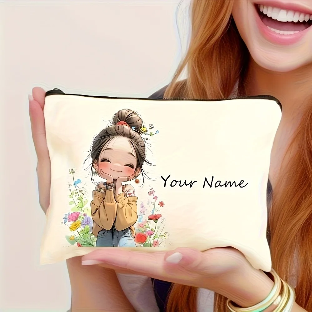 Chic Custom Name Unique Vintage Cute Floral Makeup Bags for Girls Cosmetic Pouch Toiletry Bag Pencil Case Travel Storage Handbag