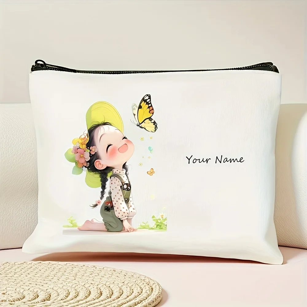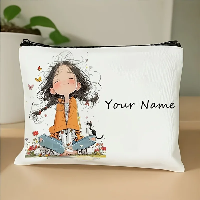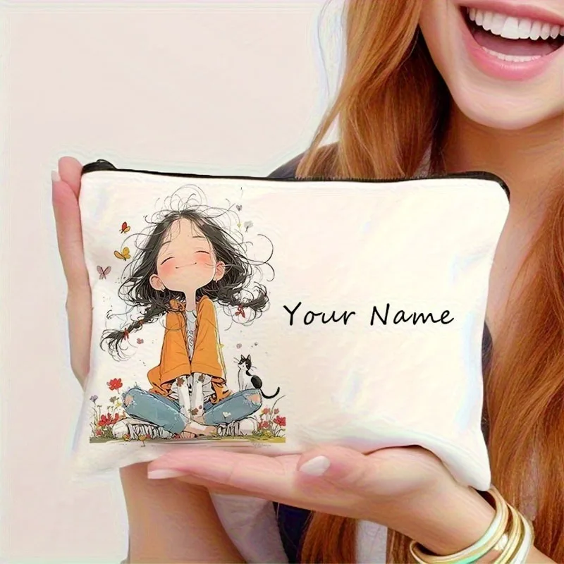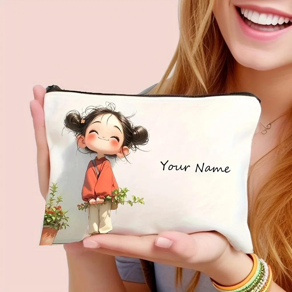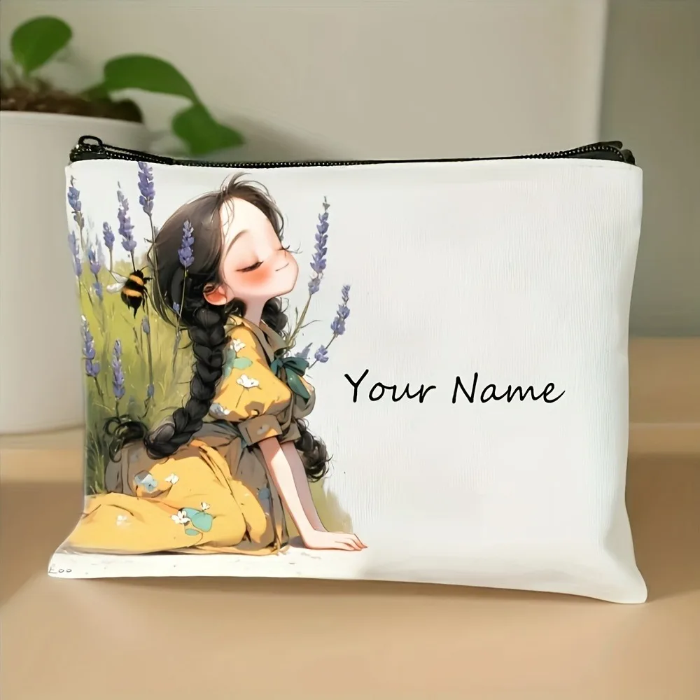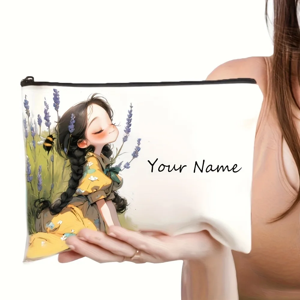 Chic Custom Name Unique Vintage Cute Floral Makeup Bags for Girls Cosmetic Pouch Toiletry Bag Pencil Case Travel Storage Handbag
