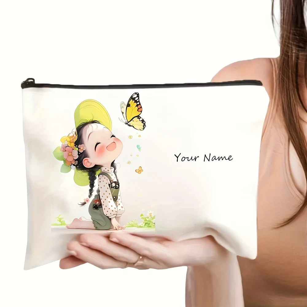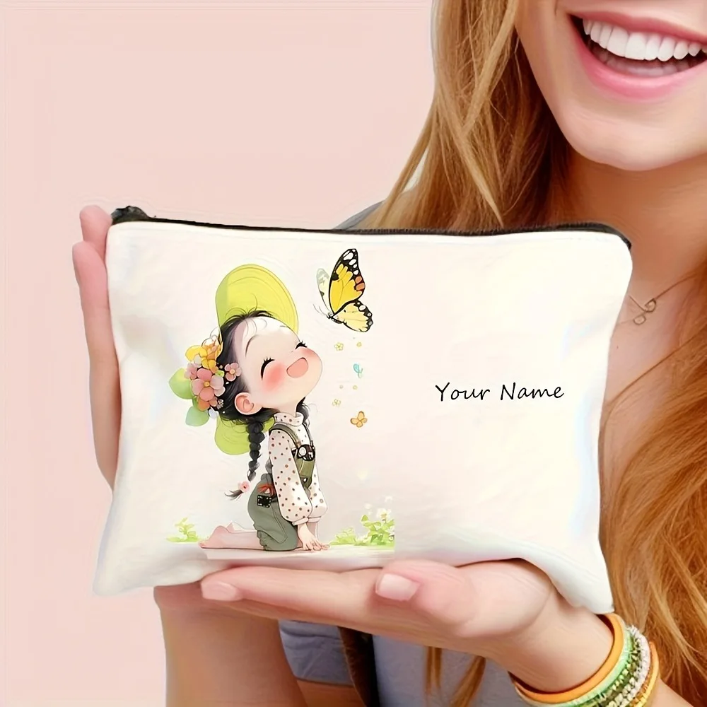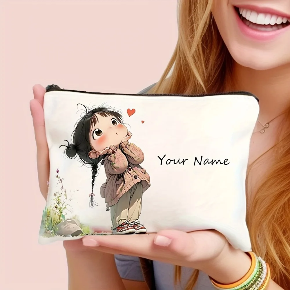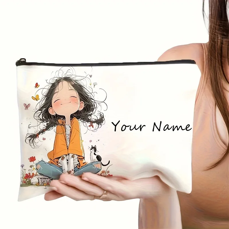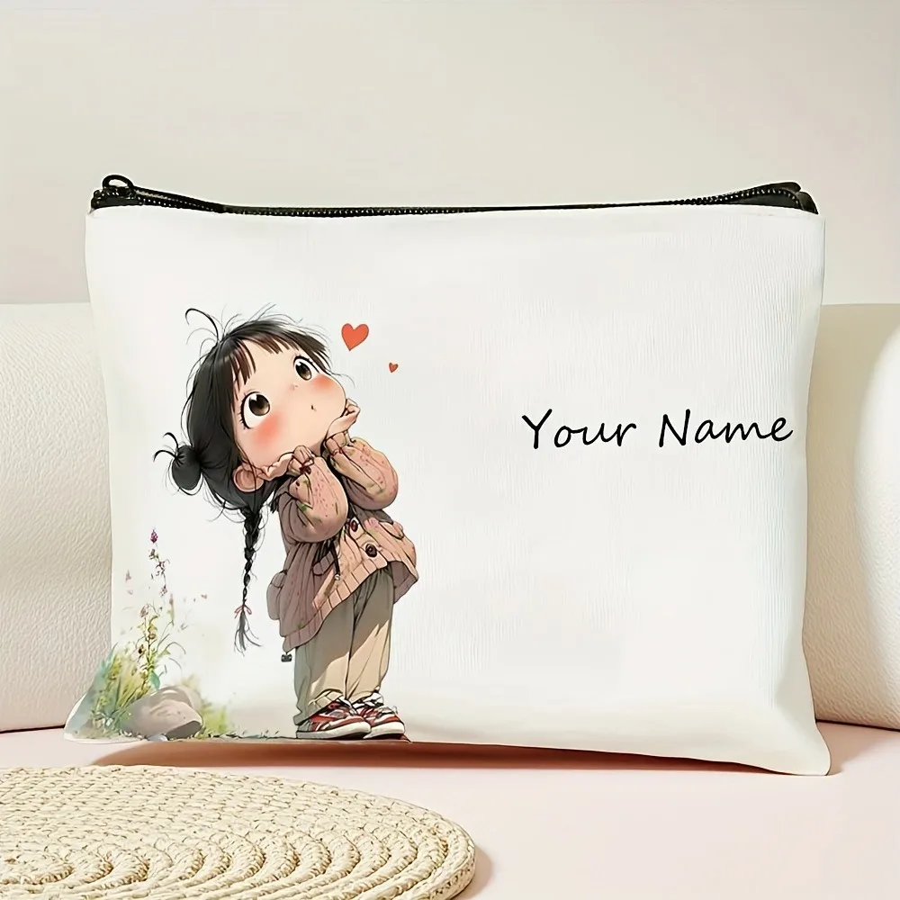 Chic Custom Name Unique Vintage Cute Floral Makeup Bags for Girls Cosmetic Pouch Toiletry Bag Pencil Case Travel Storage Handbag