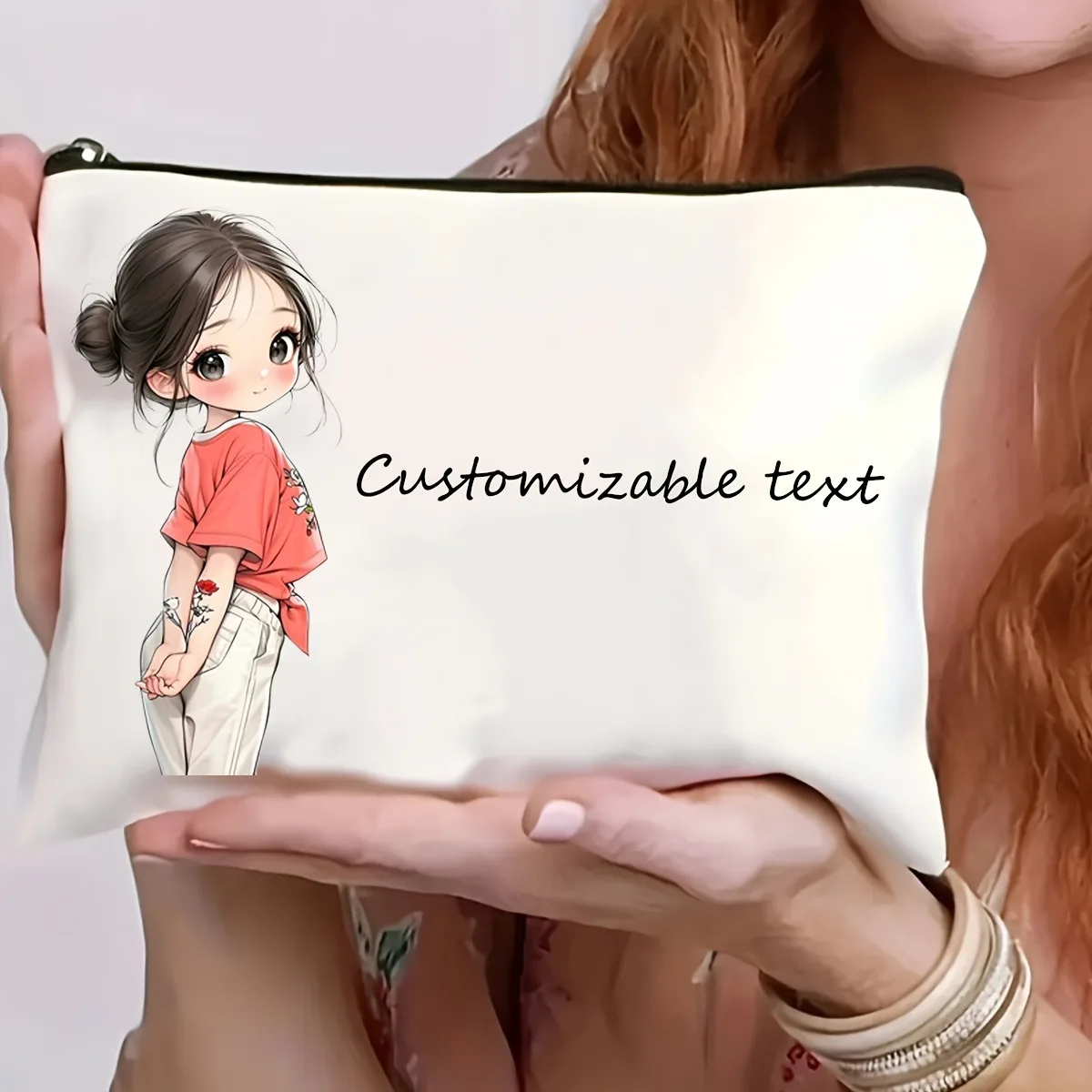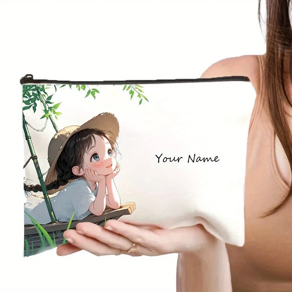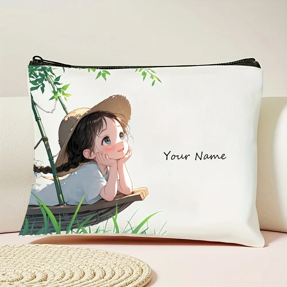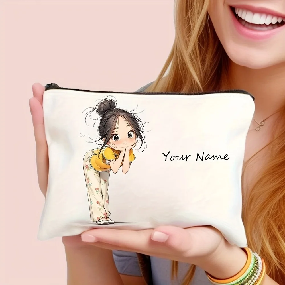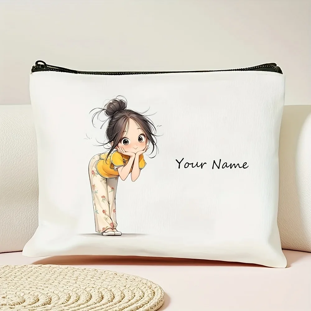 Chic Custom Name Unique Vintage Cute Floral Makeup Bags for Girls Cosmetic Pouch Toiletry Bag Pencil Case Travel Storage Handbag