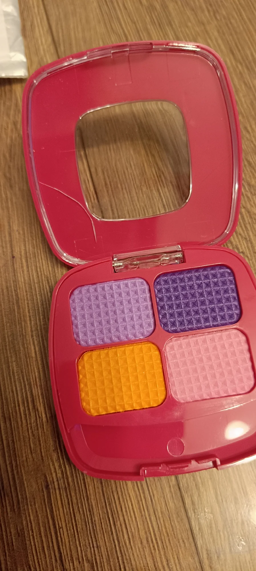 arrived with a crack. instead of eyeshadow – colored foam.