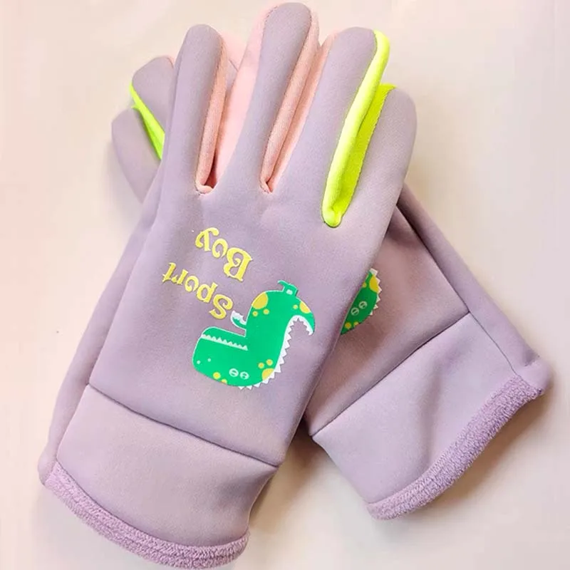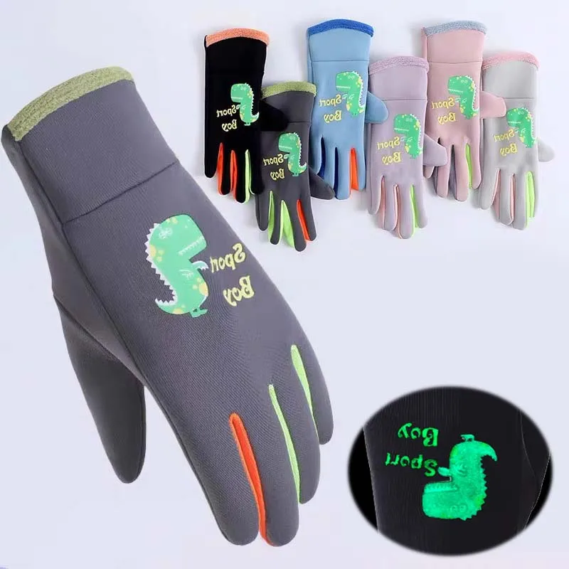 Children Warm Plush Gloves Winter Boys Girls Kids Outdoor Windproof Skiing Cycling Gloves Glow Students Toddler Cycling Mittens