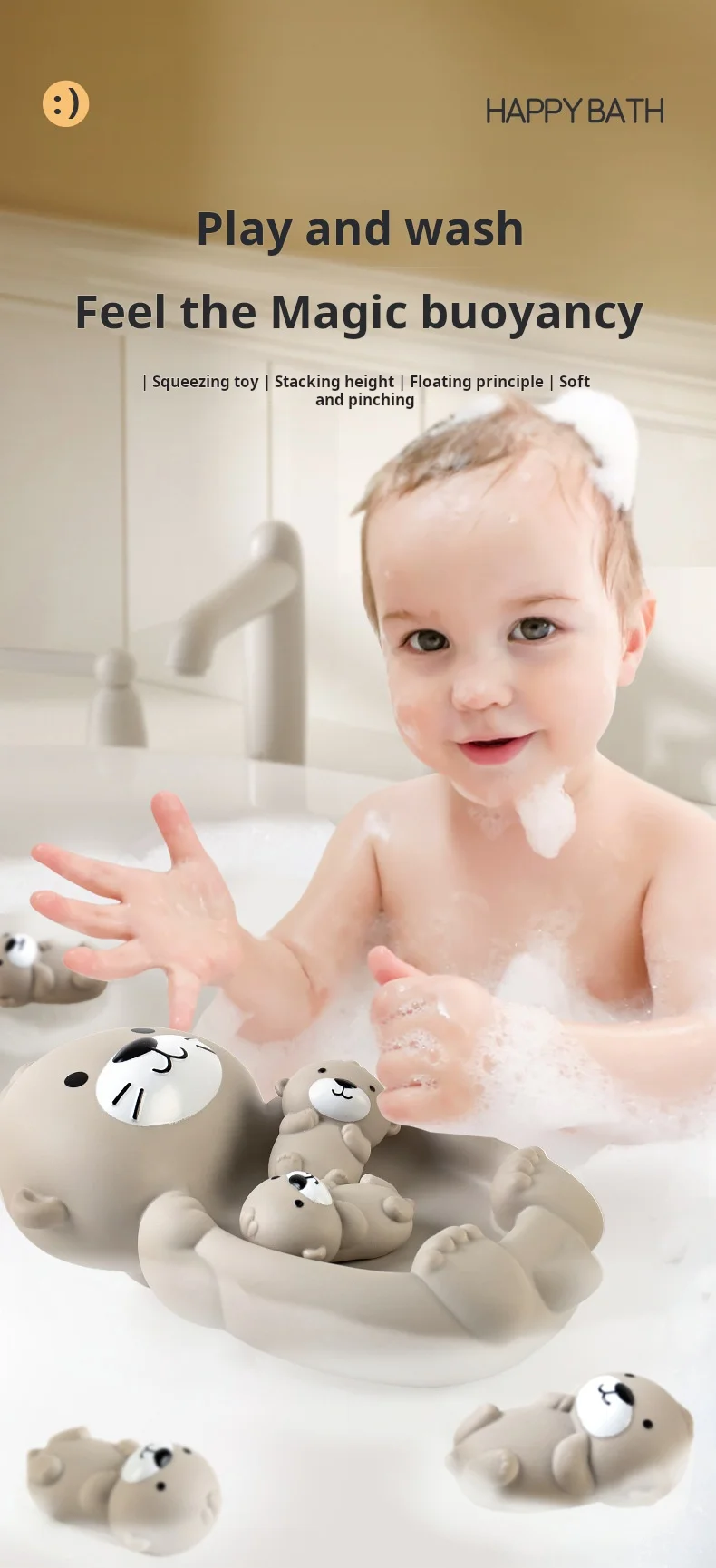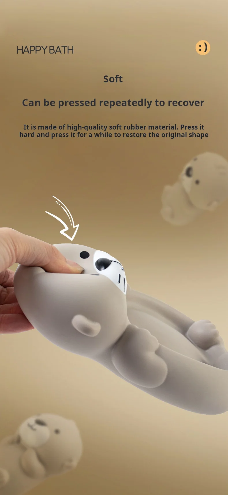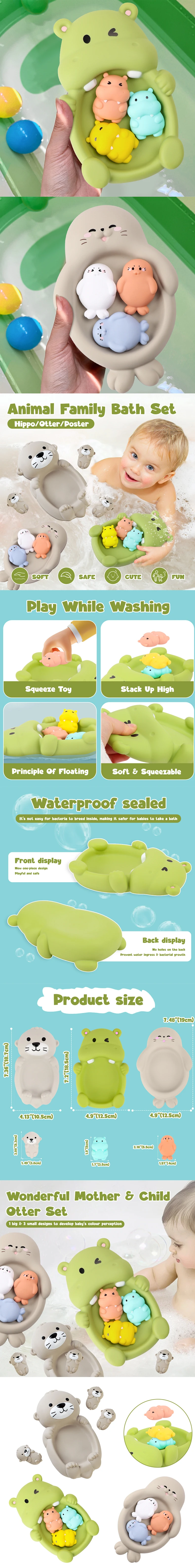 Fun: The toy is shaped by an animal otter, with cute shape and bright colors, which can attract the attention of infants and young children and increase the fun of bathing.