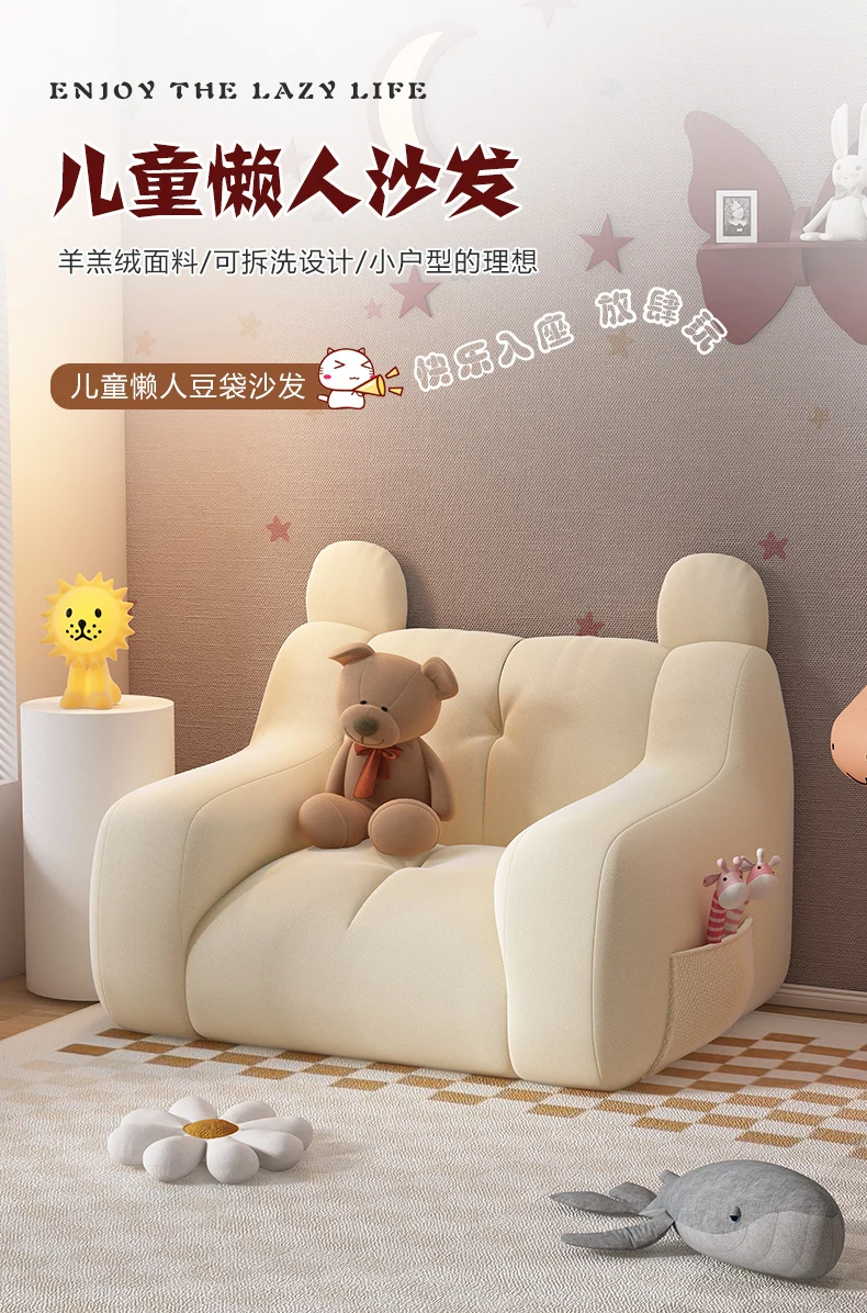 Children’s Sofa Reading Book Corner Chair Lazy Bean Bag Stool for Kindergarten Cute Small Sofa for Boys Reading Chair