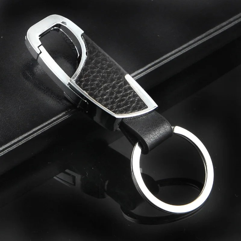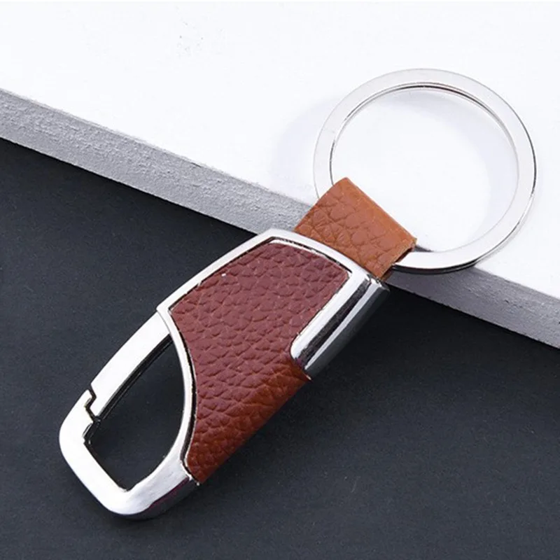 Classic Business Men Keychain Leather 2 Colors Metal Round Buckle Waist Mounted Keyring Husband Father Day Gift Daily Decoration