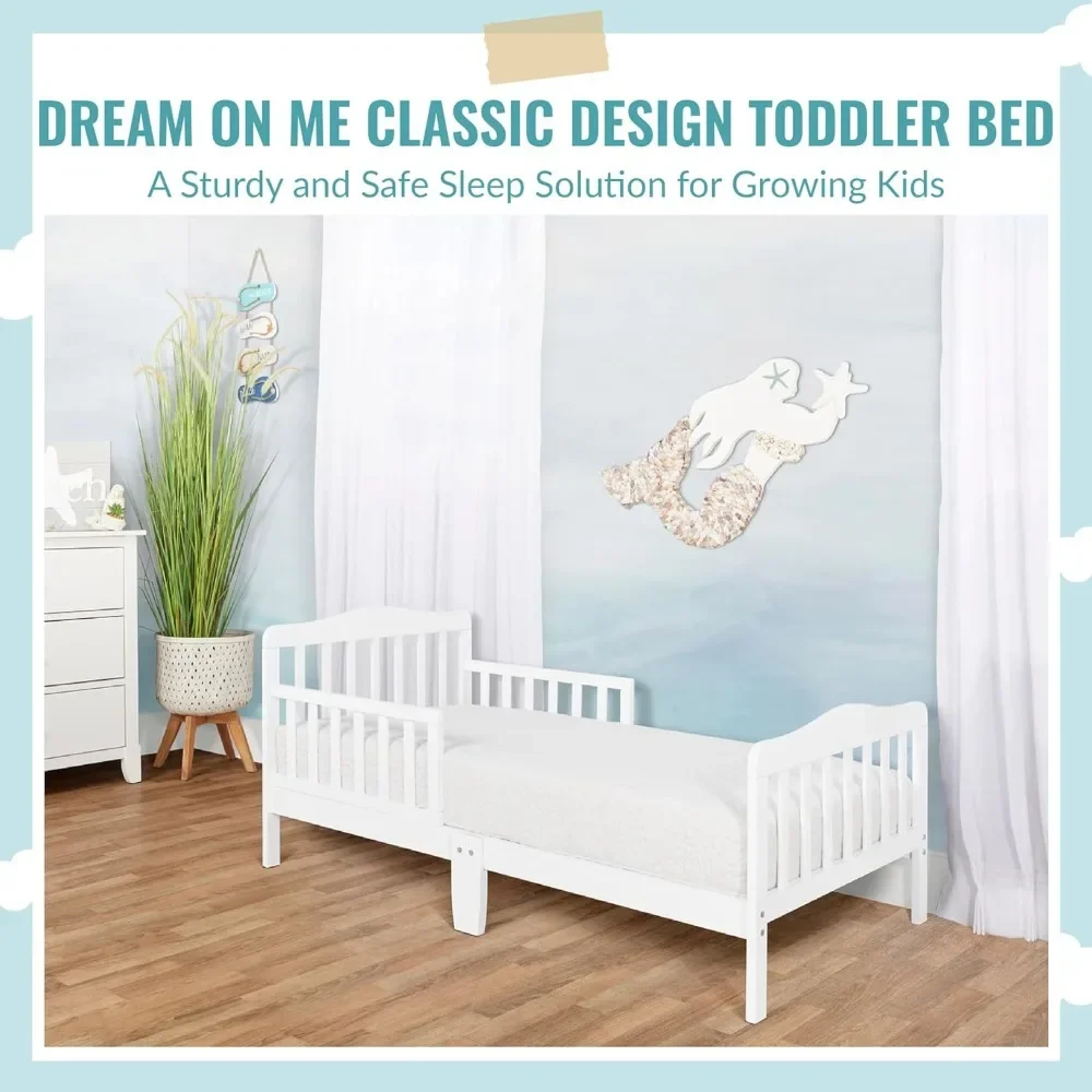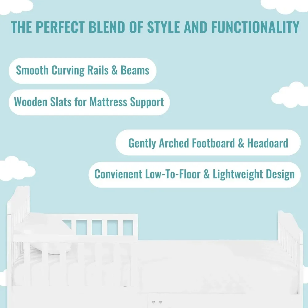 STYLISH DESIGN: The Dream On Me Classic Design Toddler Bed is ideal for toddlers as they make the transition from a crib to a bed; Minimalist in design, the solid wooden bed has gently arched head and footboards and smooth curving rails and beams