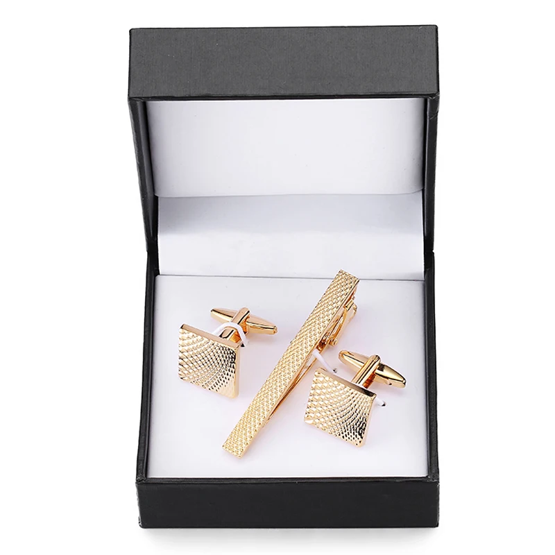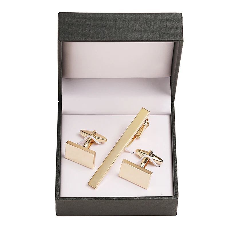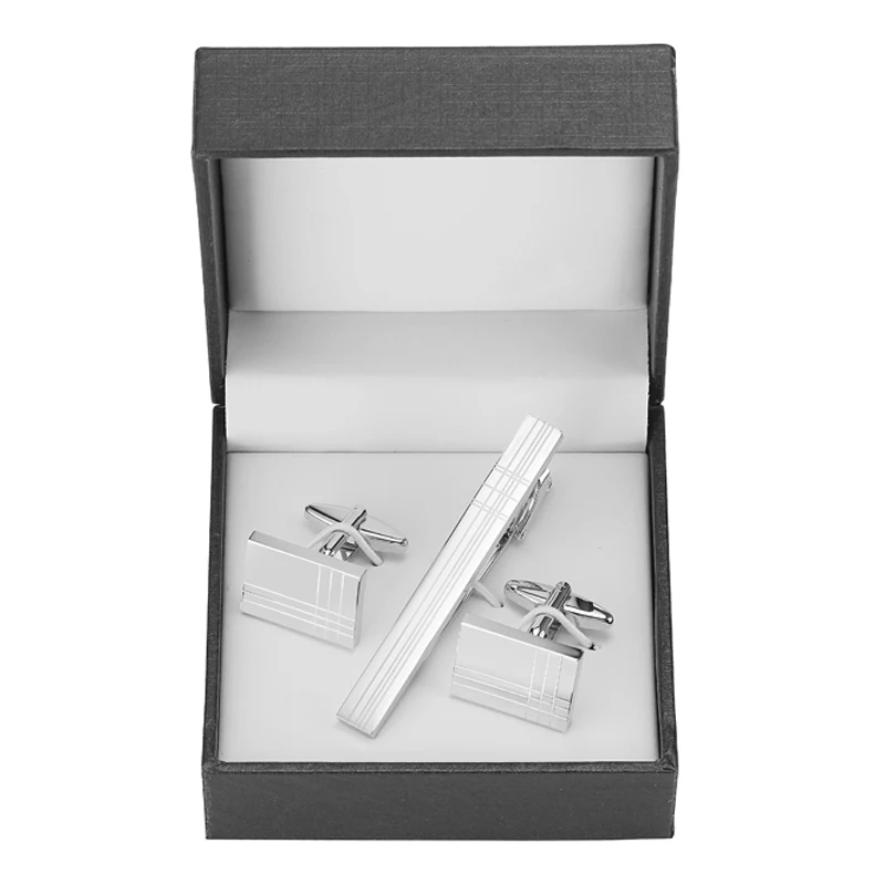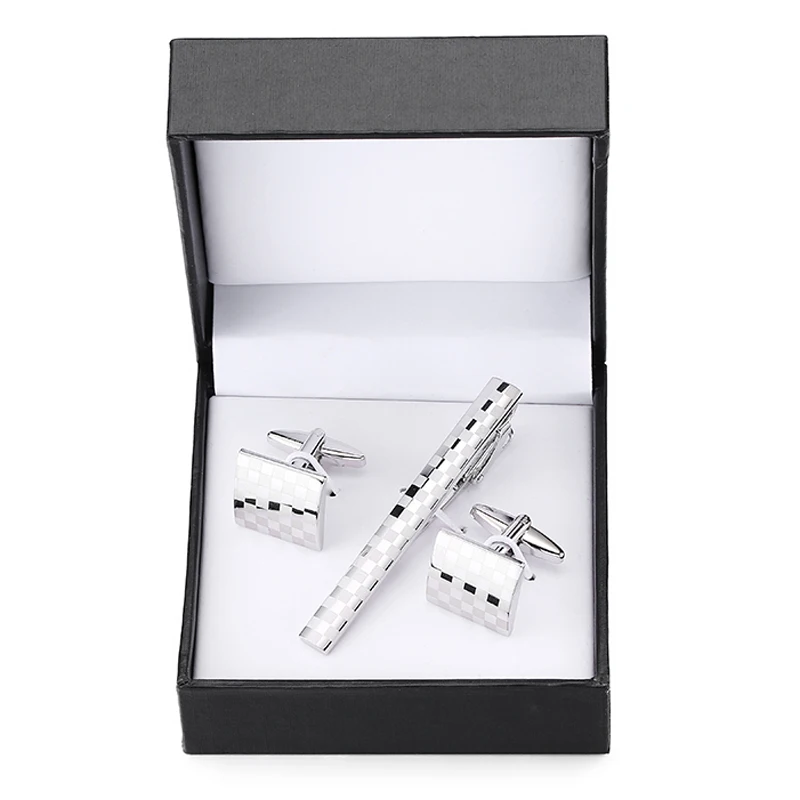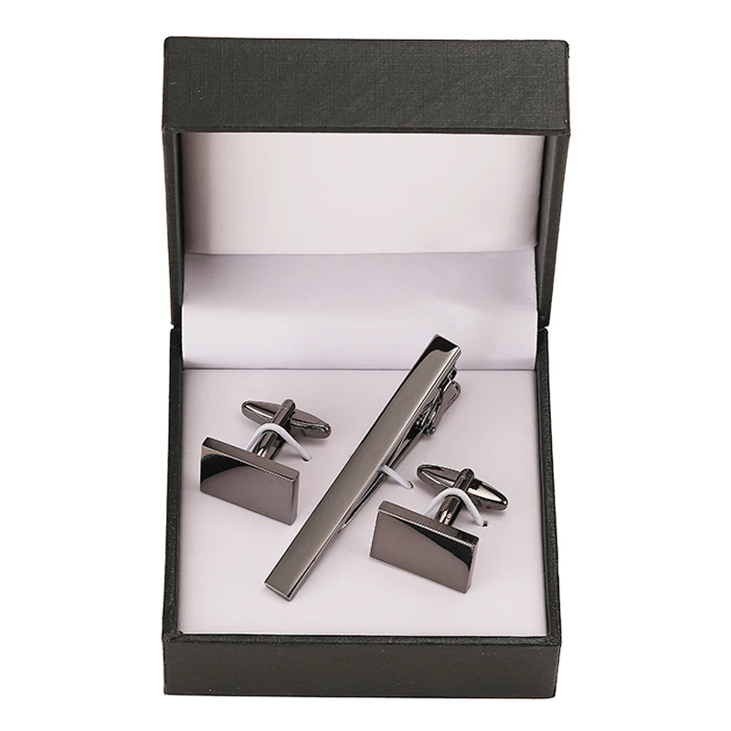 Classic men’s French shirts cufflinks tie clip drawing laser metal cuff button clips wedding suits accessories jewelry box gift