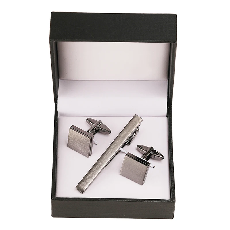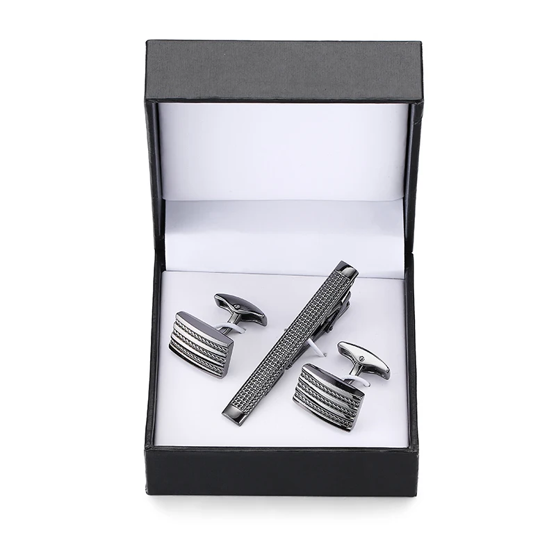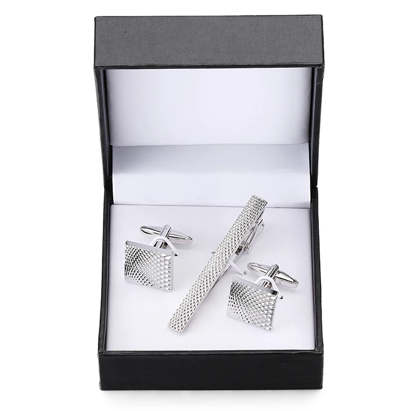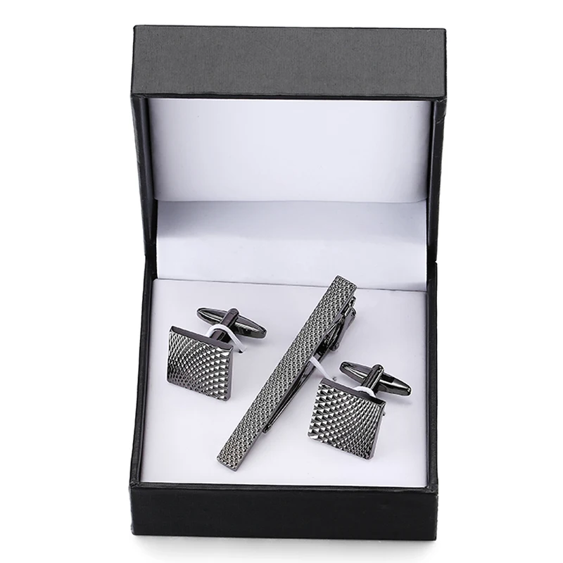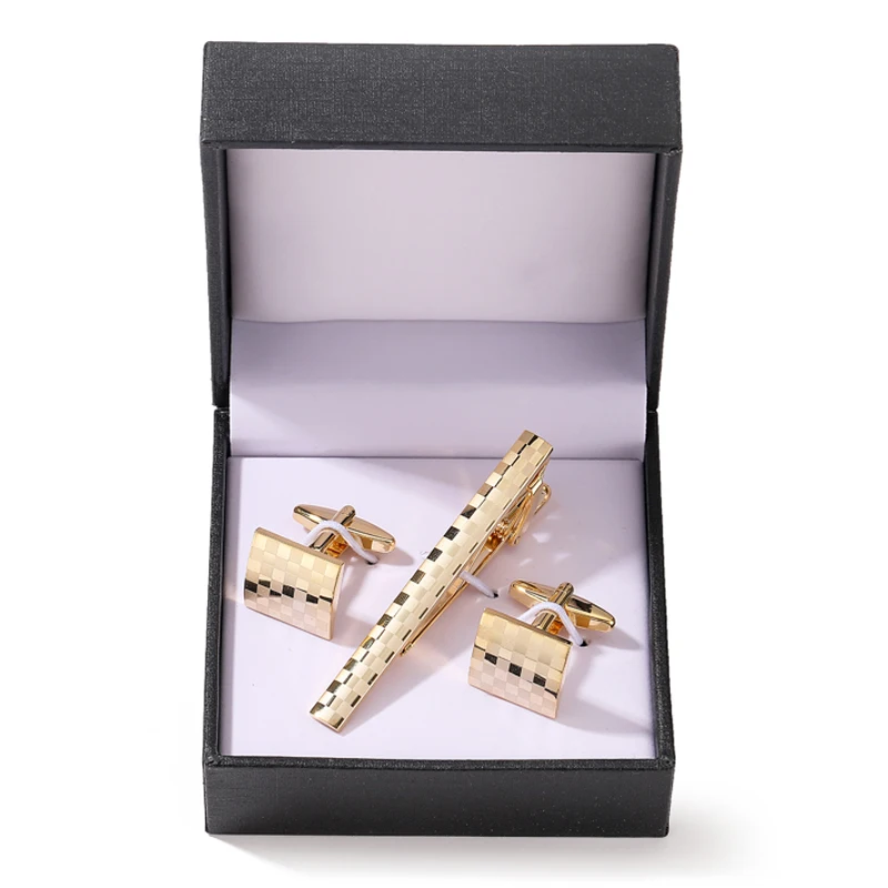 Classic men’s French shirts cufflinks tie clip drawing laser metal cuff button clips wedding suits accessories jewelry box gift