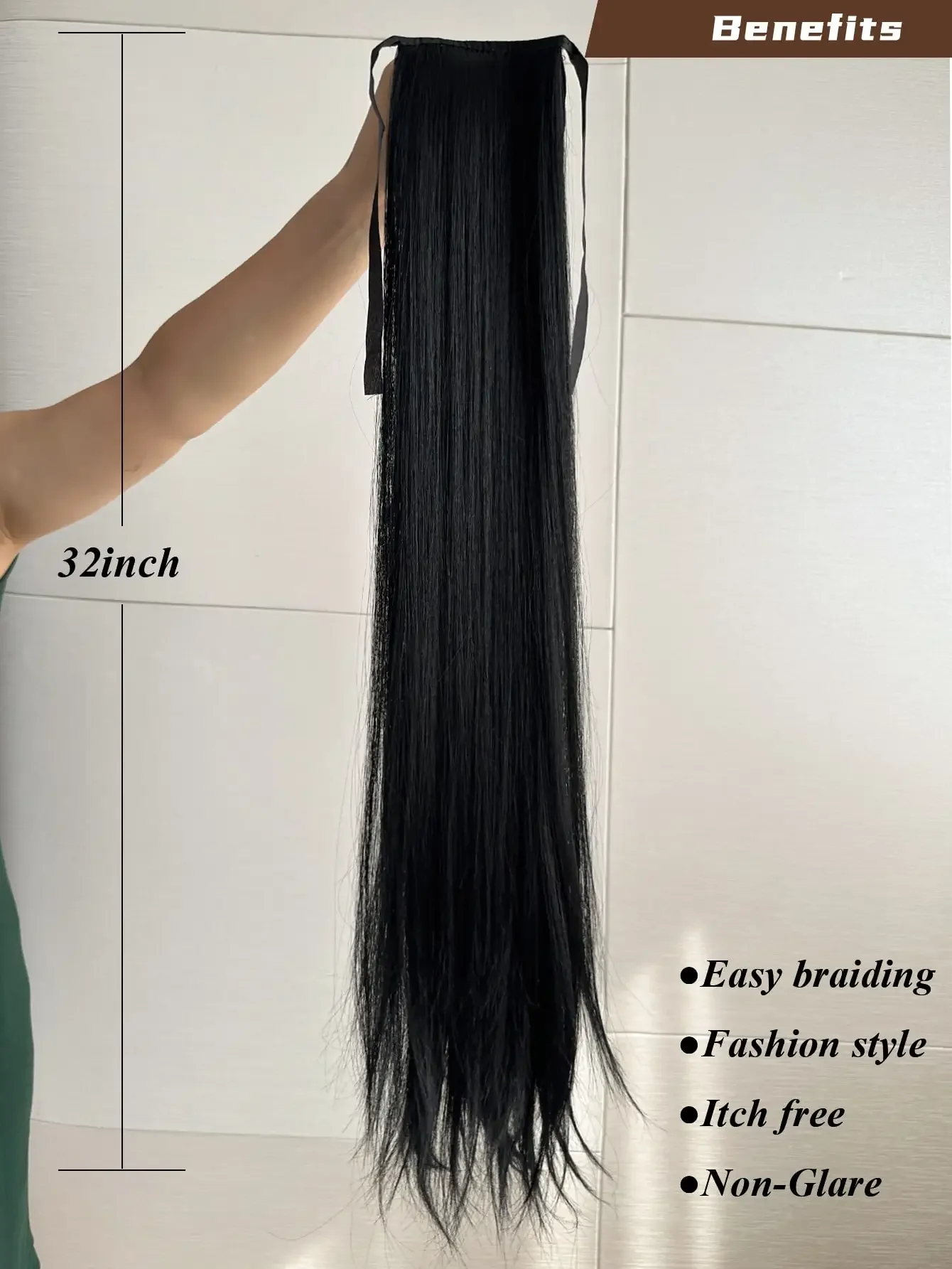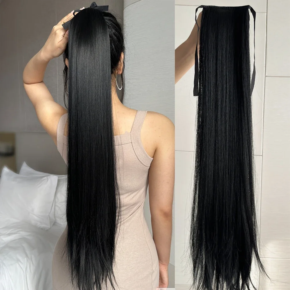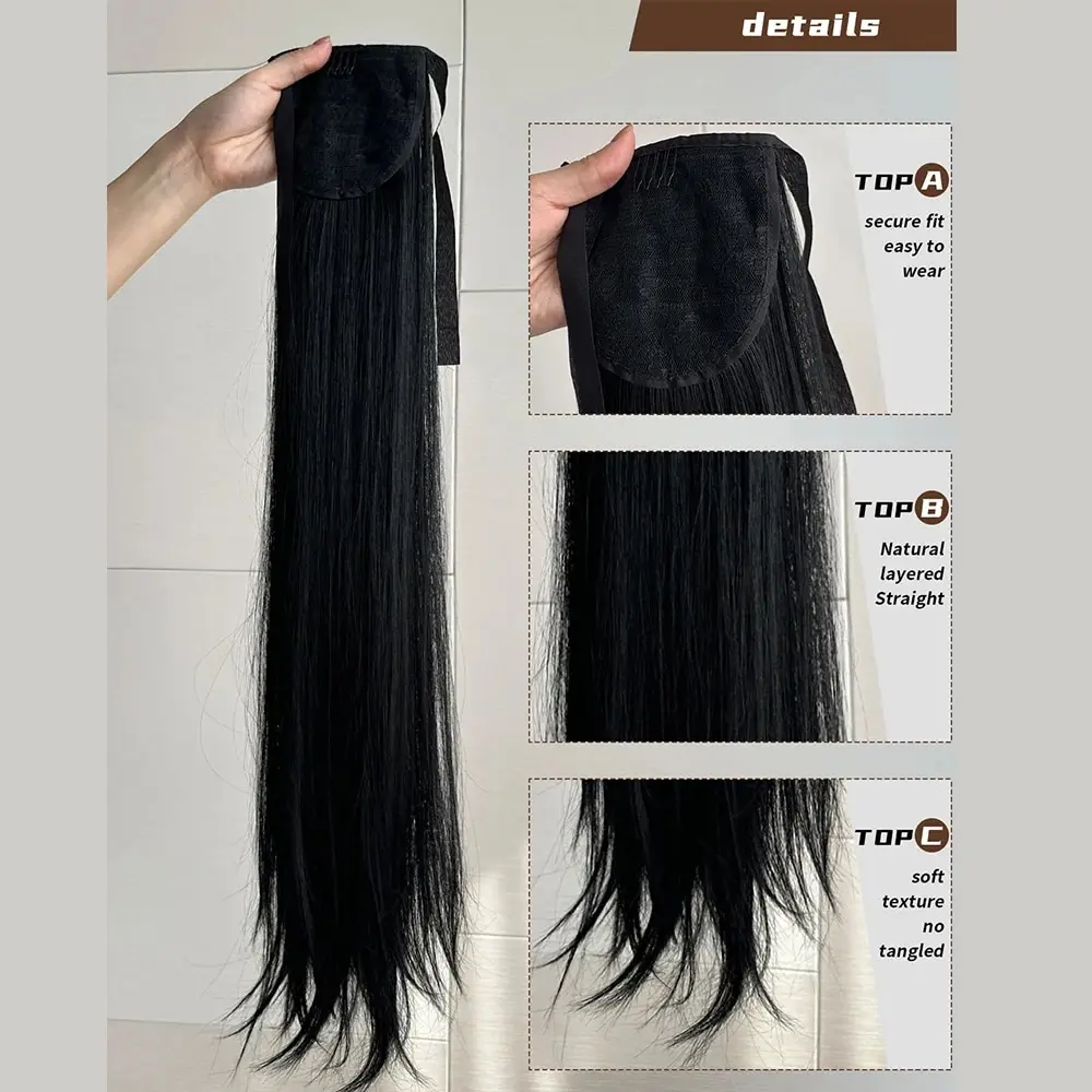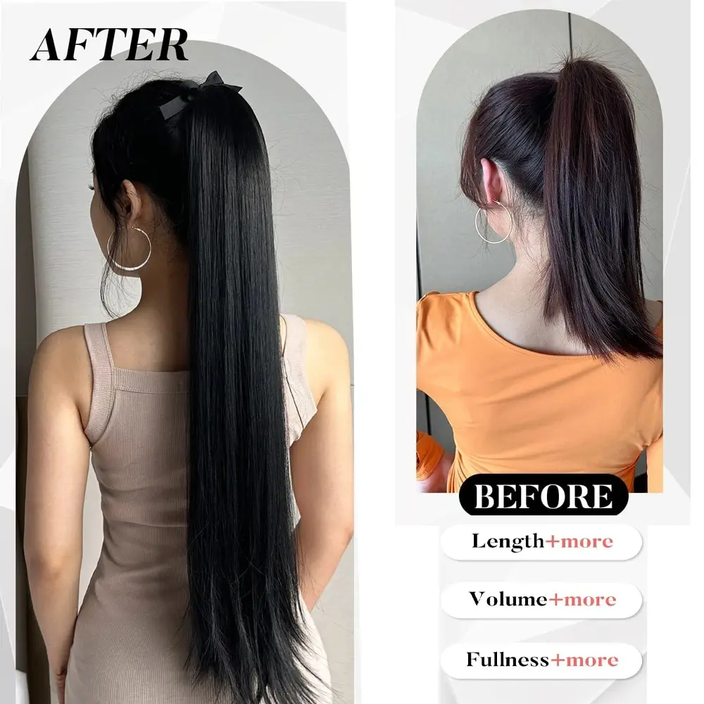 Ponytail Extension Quality: Straight Hair Ponytail Hair Extension,32 Inch, 130g/Pack. Natural Black Color. Ponytail Hair Extension Synthetic Hairpiece Pony Tail Clip in Hair Extensions for Girl Lady Woman. 100% Imported Wire Fiber High Temperature Resistant, Soft, Natural.