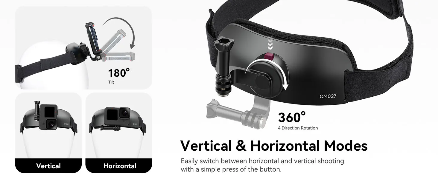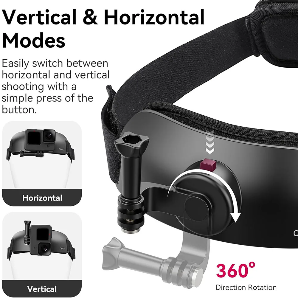 CM027 Camera Head with Mount Supports Vertical Shooting, Suitable for GoPro Max, DJI Osmo Action, Insta360, Sports Cameras