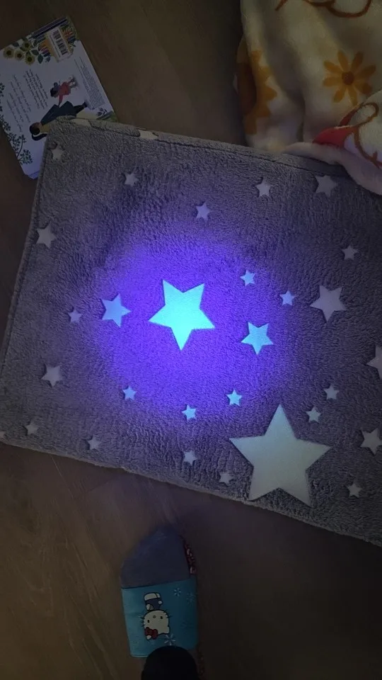 My son loves his chair. He’s already wrapped up in his blanket using it. He is so excited to see it glow tonight, i tested it with a black light & it glows very well!
