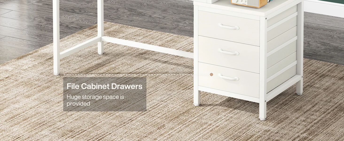 - [VERSATILE & REVERSIBLE FILE CABINET]: The reversible file cabinet can be configured either on the right or left as your preference. More than as a file storage cabinet to keep your documents, books or other home office supplies well sorted and organized, it also can be used as a printer stand. The beside file cabinet enriches the utility and functionality of this desk.