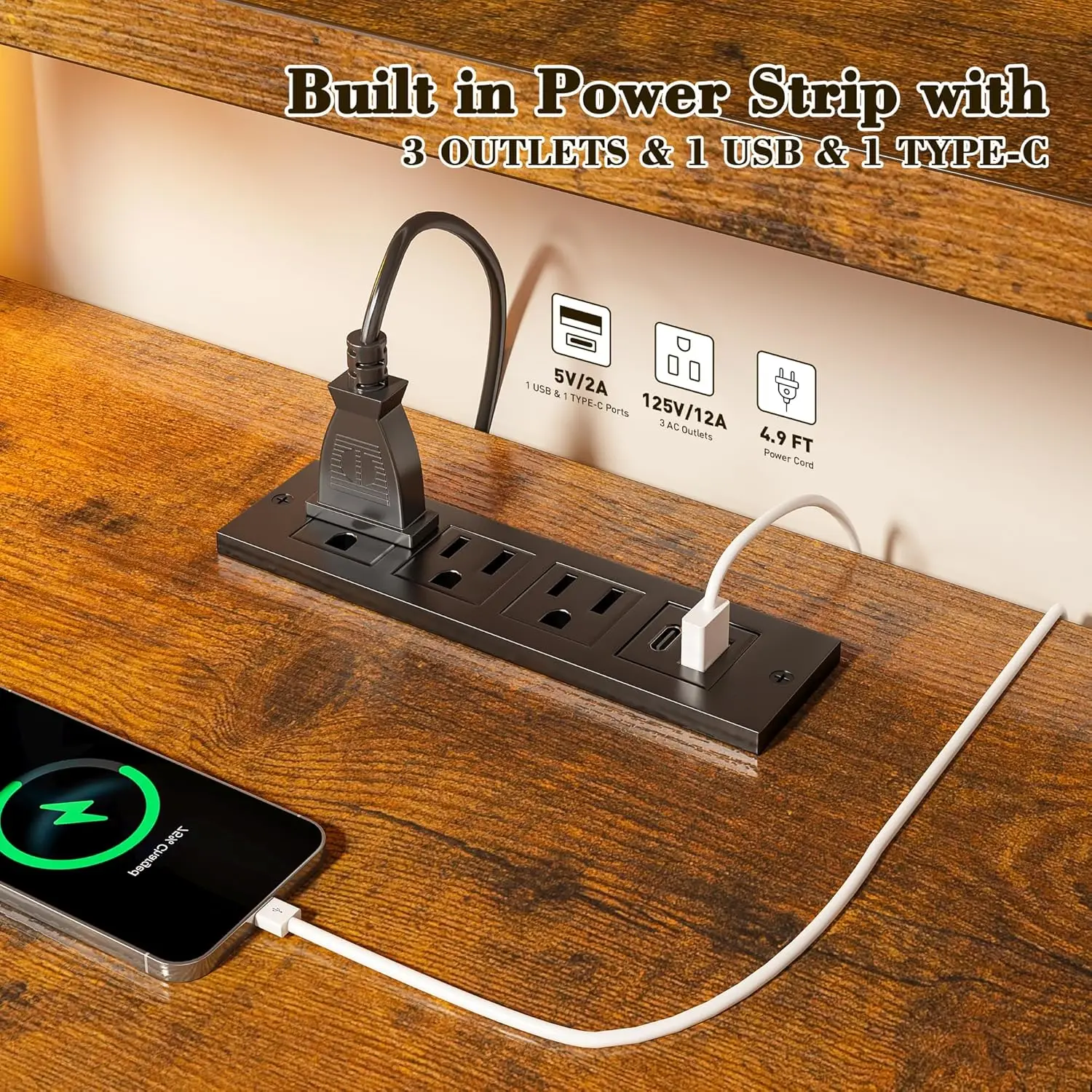 - 【Computer Desk With Smart Illumination & Charging Hub】This Office desk combines vibrant RGB lighting (60,000 colors, 29 modes) with a powerful charging station (3 outlets + USB/Type-C). Control the music-sync LEDs via remote while charging all devices simultaneously, maintaining both ambiance and organization in your workspace.