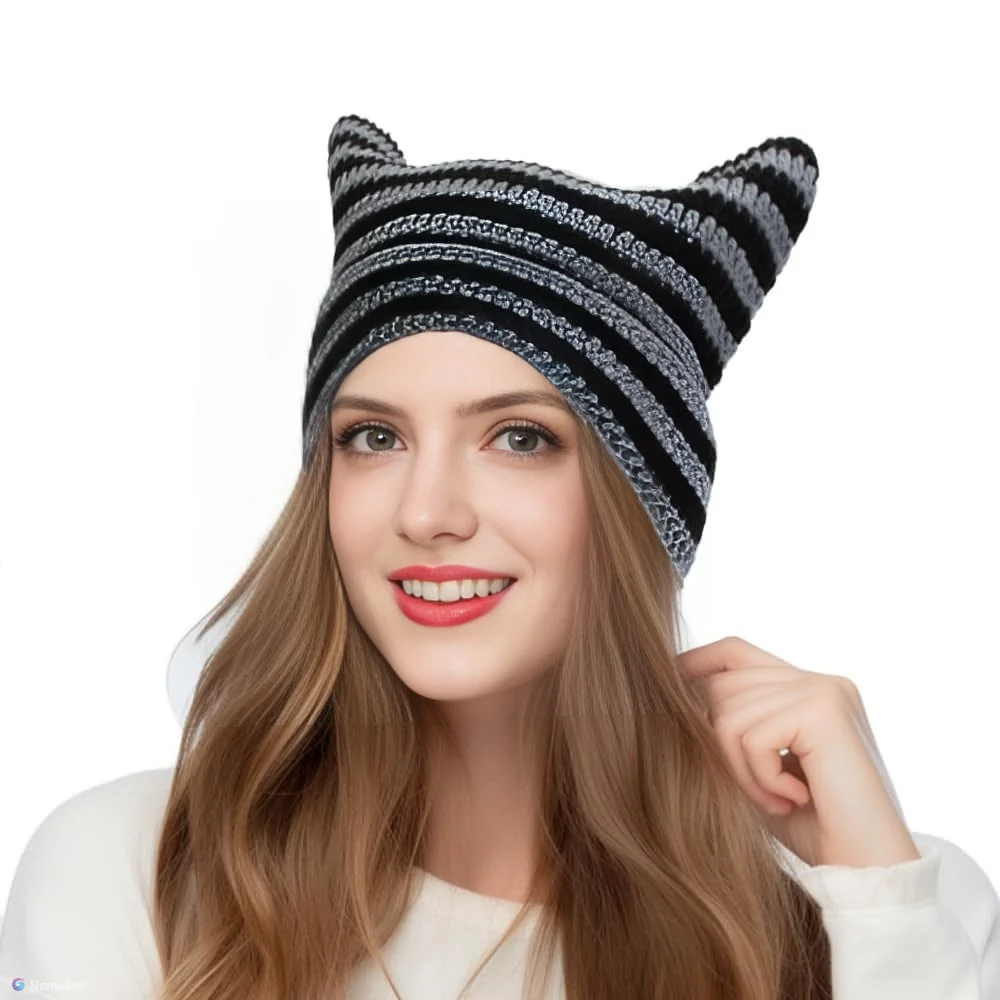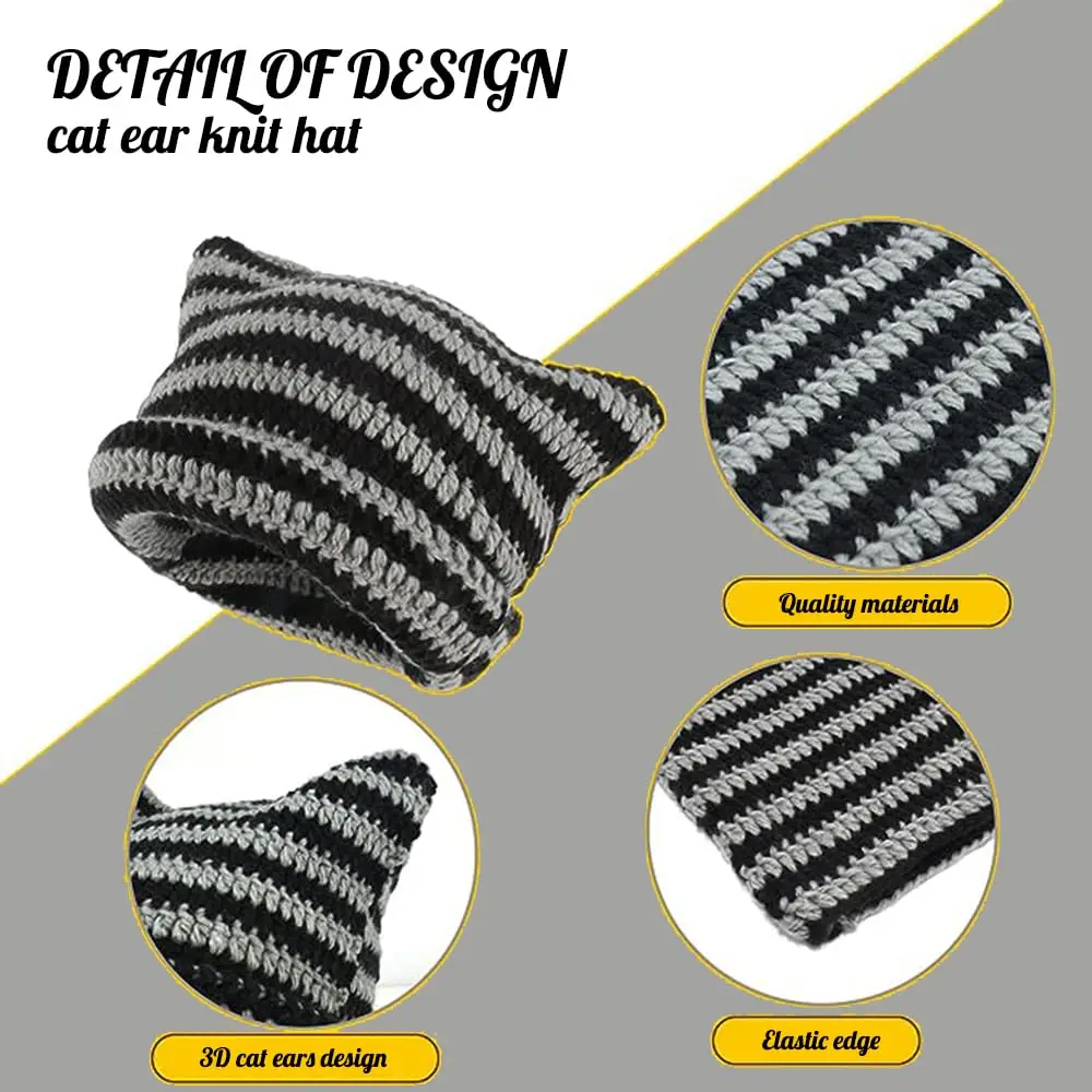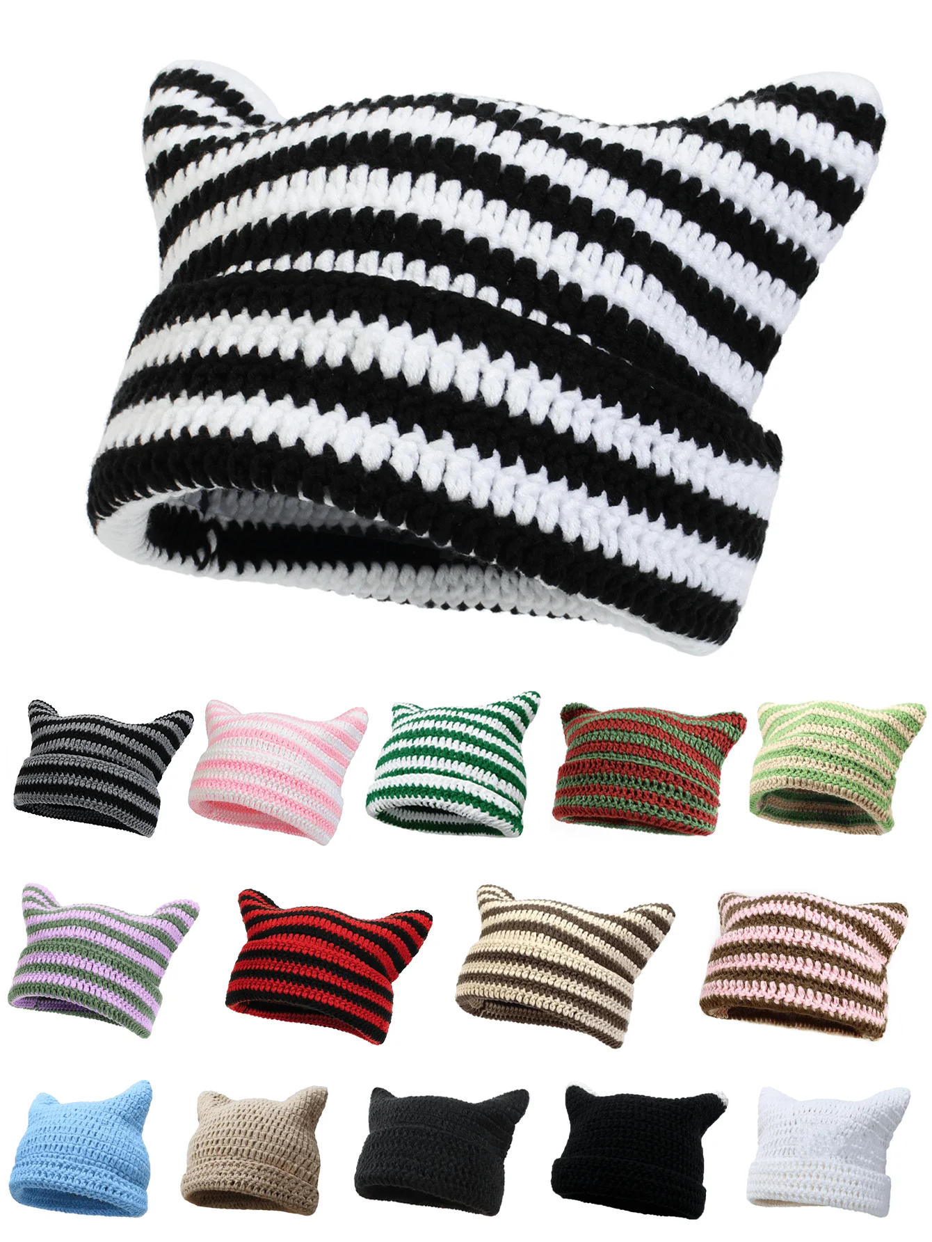 10 reviews for Corchet Cute Cat Ears Beanie Hat for Women Winter Striped Korean Fashion Y2K HipHop Cosplay Knitted Streetwear Men Skullies
