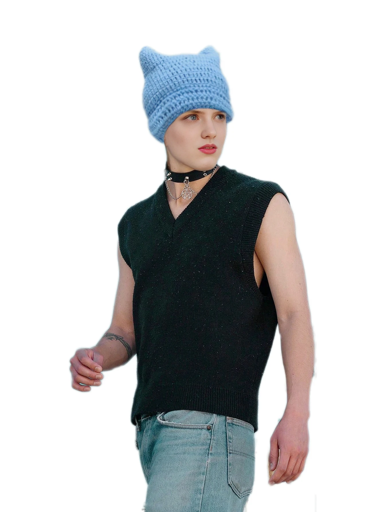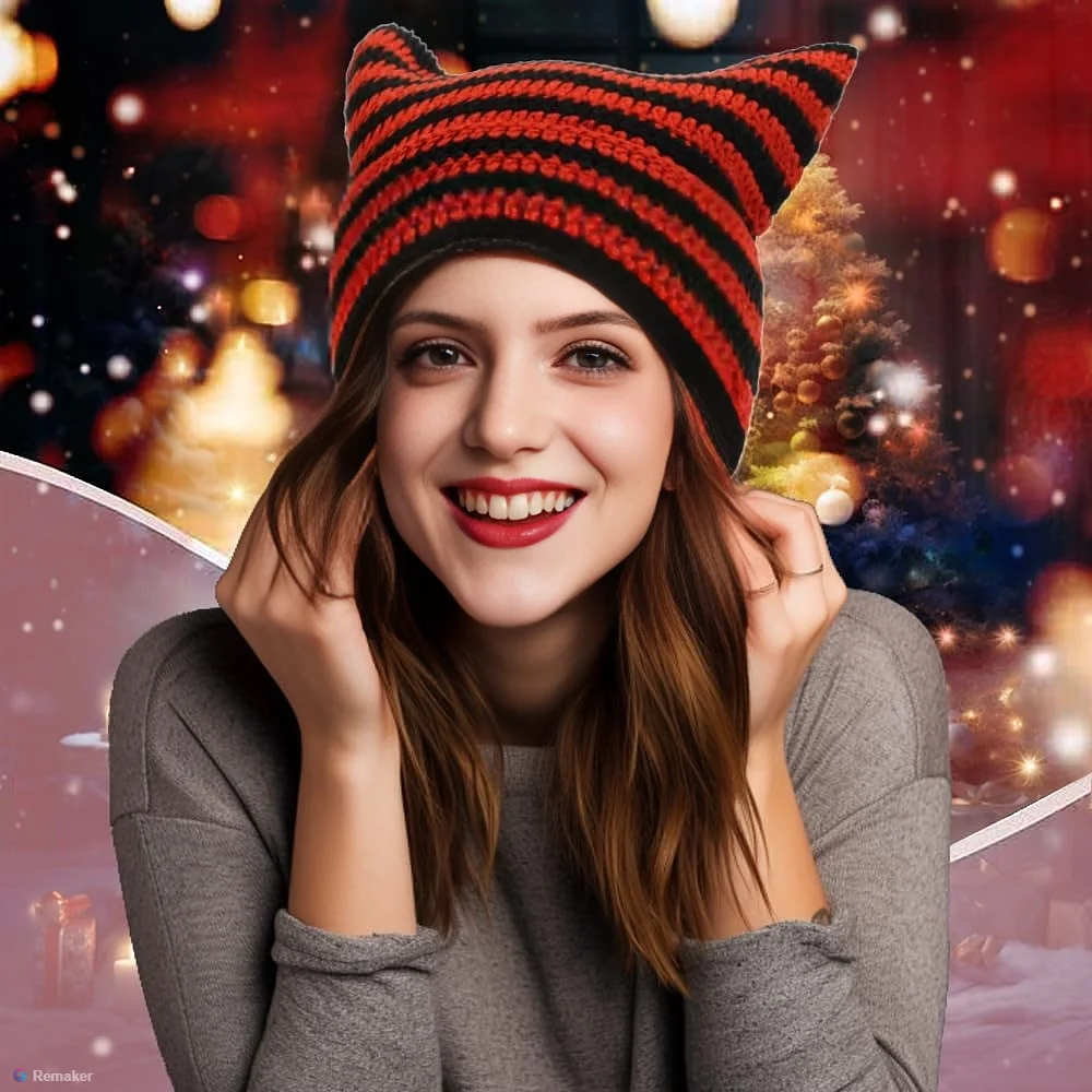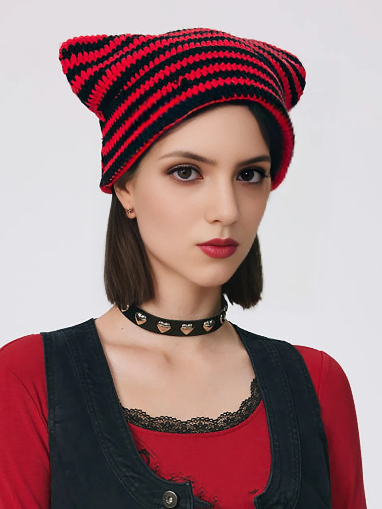 10 reviews for Corchet Cute Cat Ears Beanie Hat for Women Winter Striped Korean Fashion Y2K HipHop Cosplay Knitted Streetwear Men Skullies