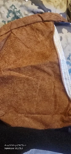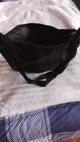 Satisfied, color lighter than in the photo, very comfortable and spacious, inside two open pockets.