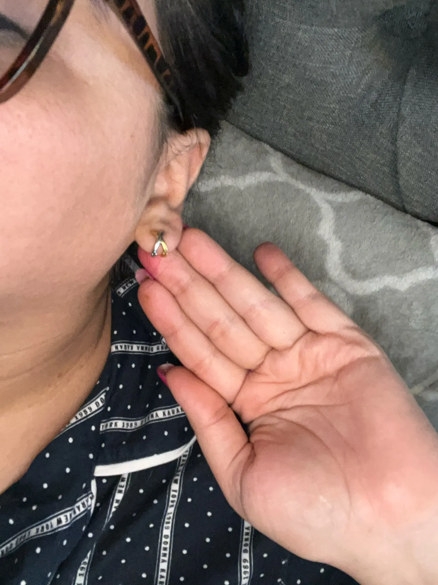 I loved them and bought them in both gold and silver colors. They don’t weigh anything, so they don’t pull your ear down.