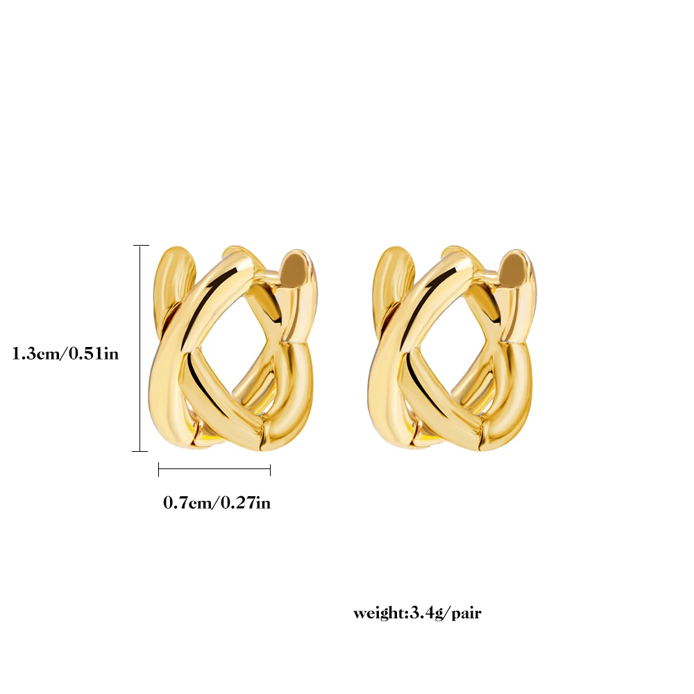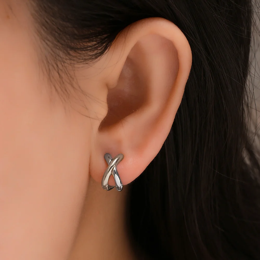 Criss-cross Gold Silver Colors Tiny HuggieHoop Earrings for Women Mini Small Ear Buckle Cartilage Piercing Earrings Punk Jewelry