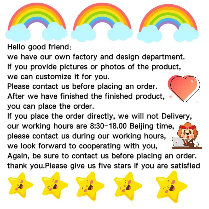 listened and did designs to what we wanted. then made and recieved really quickly. Size wise, be sure to order one times bigger.