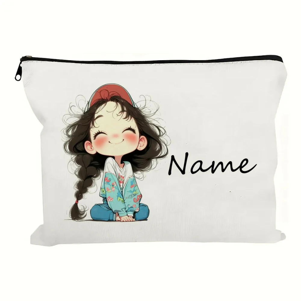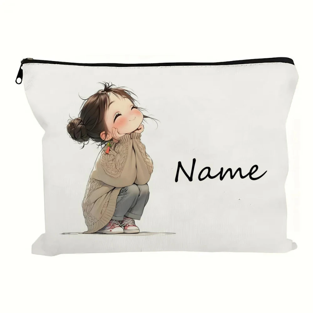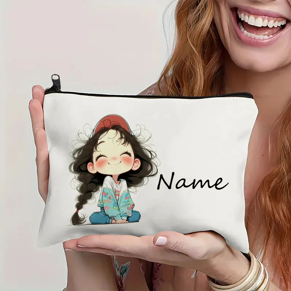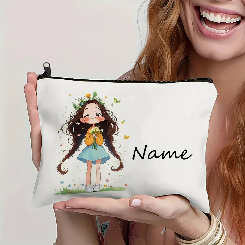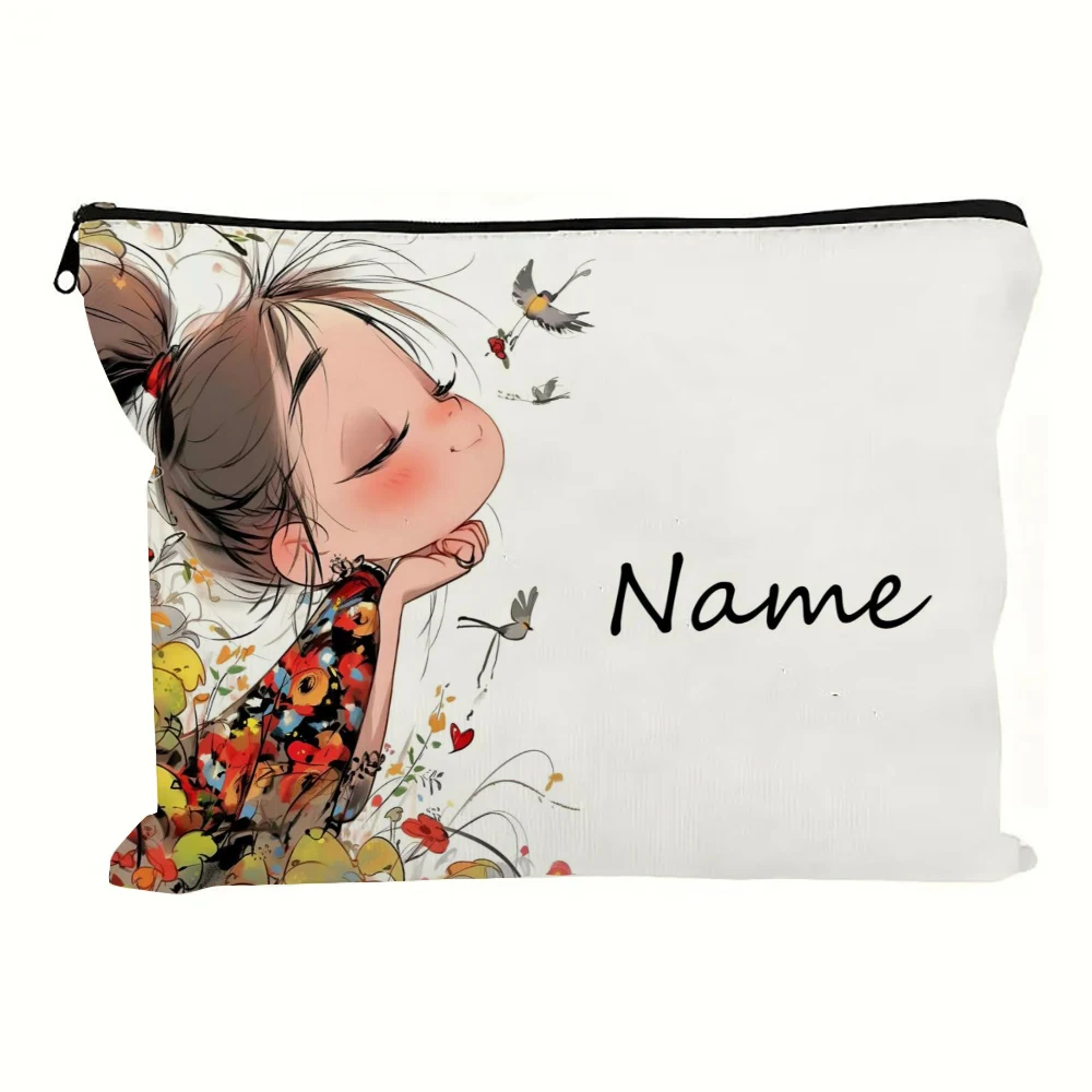 Custom Name Vintage Cute Girl Pattern Makeup Bag Handbag Toiletry Bag Pencil Case Holiday Gift Cosmetic Bag