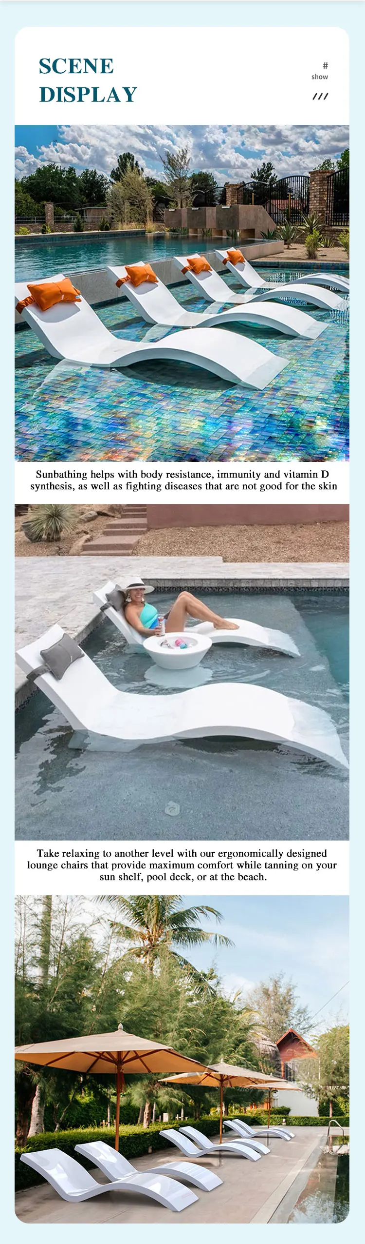 Be the first to review “Custom Outdoor Waterproof Fiberglass Frp Swimming Pool Ledge Chaise Lounge Chair in Pool Water Beach Sun Lounger for Pool Side” Cancel reply